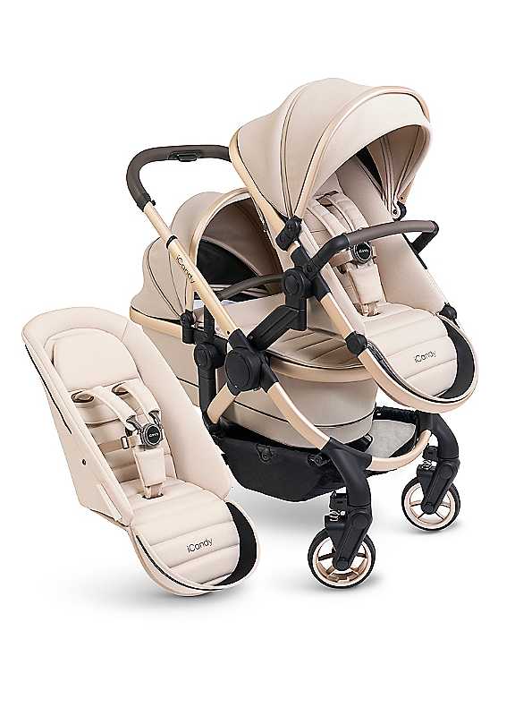 The iCandy Peach 7 Double is the ultimate pushchair for modern parents. It easily adapts from a single to a double pram and is designed to fit perfectly around you and your growing family. Suitable from birth due to the spacious carrycot, it can also be used for permanent overnight sleeping ensuring your baby is in a safe environment both at home and when out visiting family and friends or on holiday. With options of using the Peach 7 double pram with a carrycot for baby and a seat unit for toddler, or optional car seat and seat unit, or even two seat units it is perfect for all different age gaps between children. There is even an integrated ride on board to allows your older child (up to 20kg) to ride along in comfort and safety whilst being close to parent at all times. The premium knitted jersey fabric offers UV50+ protection for both your child and your pushchair from the sun. It has a simple free-standing, one handed fold and has a carry strap for easy transportation. From the very first push you will notice the ultra-smooth ride thanks to its PU puncture proof tyres, and it is perfect on all terrains. It is easy to manoeuvre in tight spaces or getting up and down kerbs and with built in suspension, it will tackle all types of walks. The adjustable handle height allows even the smallest and tallest of people to push the stroller easily. The five-year warranty gives you the confidence to know your pram will last you a long time. Brand: iCandy Minimal assembly Seat Unit Dimensions:88 x 36 cm Carrycot Dimensions:88 x 36 x 21 cm Folded Dimensions:70 x 61 x 29 cm Seat Unit Weight Limit: 25kg Seat Unit Weight Limit - Off Elevators 25kg Seat Unit Weight Limit - On Elevators 20kg Seat Unit Weight Limit - Double & Twin 20kg Weight of product: 12.48kg Manufacturer's 5-year guarantee Product Care: Wipe clean only, Avoid household cleaners/abrasives Specifications Material: Polyester