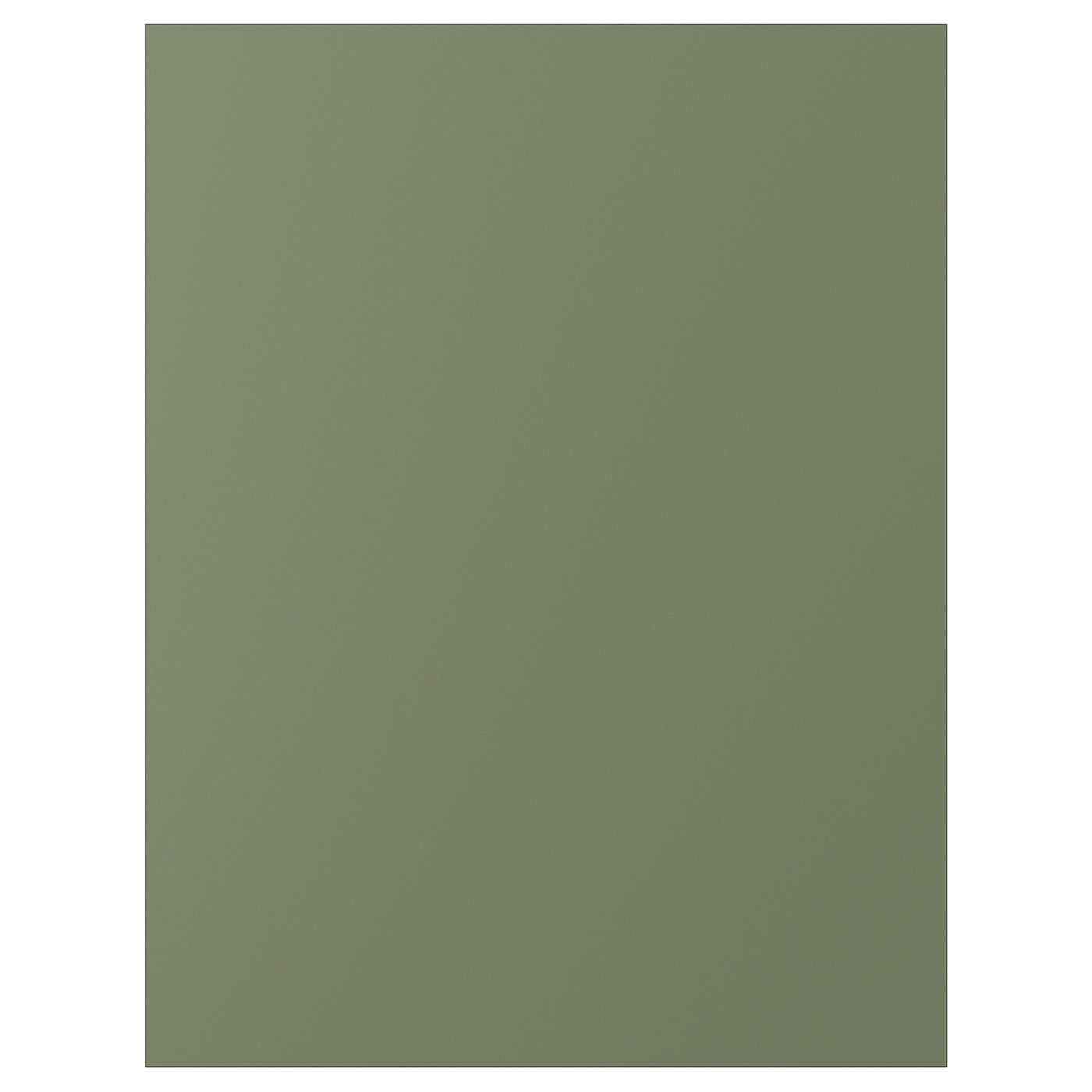 AXSTAD cover panel, grey-green, 62x80 cm, Basematerial: Particleboard. With cover panels in the same harmonious matte grey-green shade as your fronts, you give your kitchen a uniform expression that enhances the style.