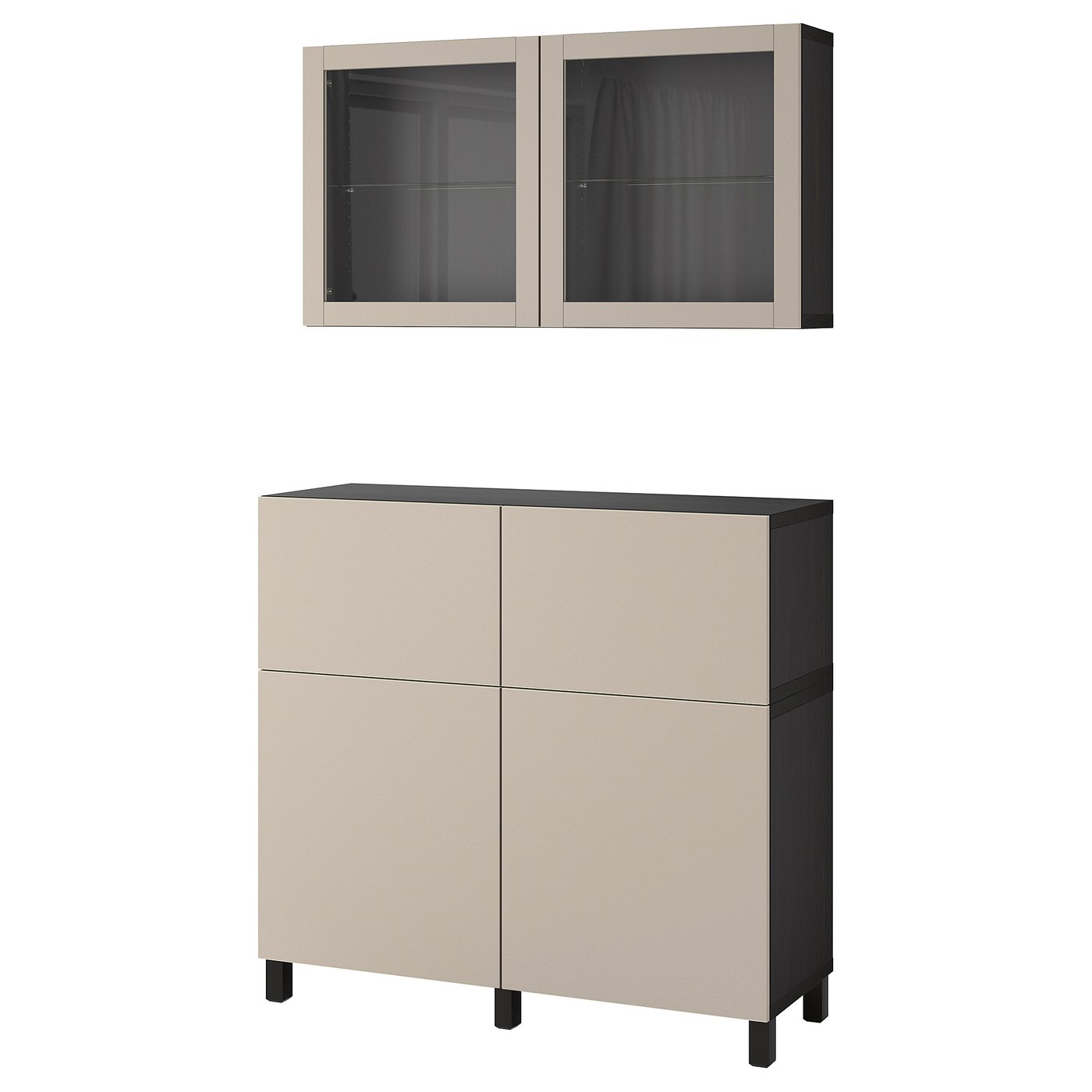 IKEA BESTÅ storage combination w doors/drawers, black-brown Lappviken/Stubbarp/light grey-beige clear glass, 120x42x213 cm