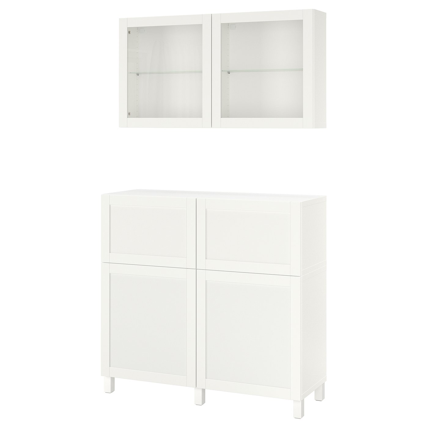 IKEA BESTÅ storage combination w doors/drawers, white/Hanviken/Stubbarp white clear glass, 120x42x213 cm