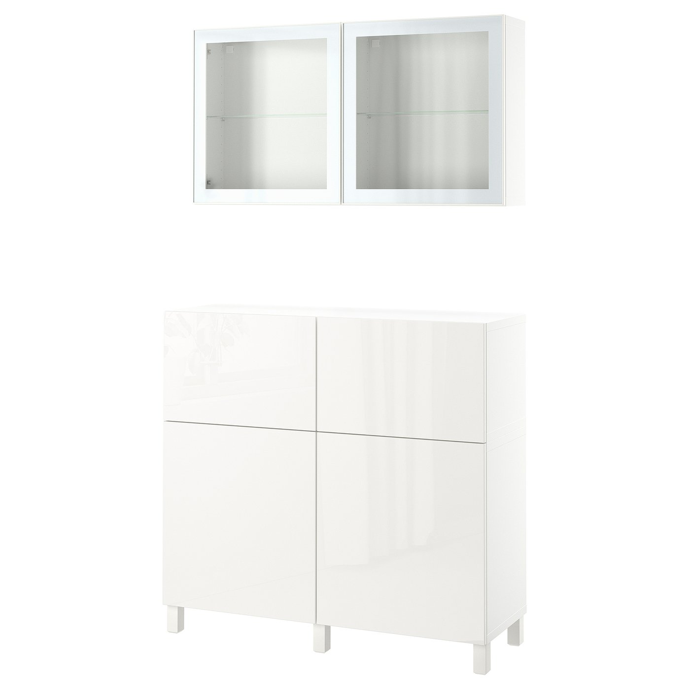 IKEA BESTÅ storage combination w doors/drawers, white/Selsviken/Stubbarp high-gloss/white clear glass, 120x42x213 cm