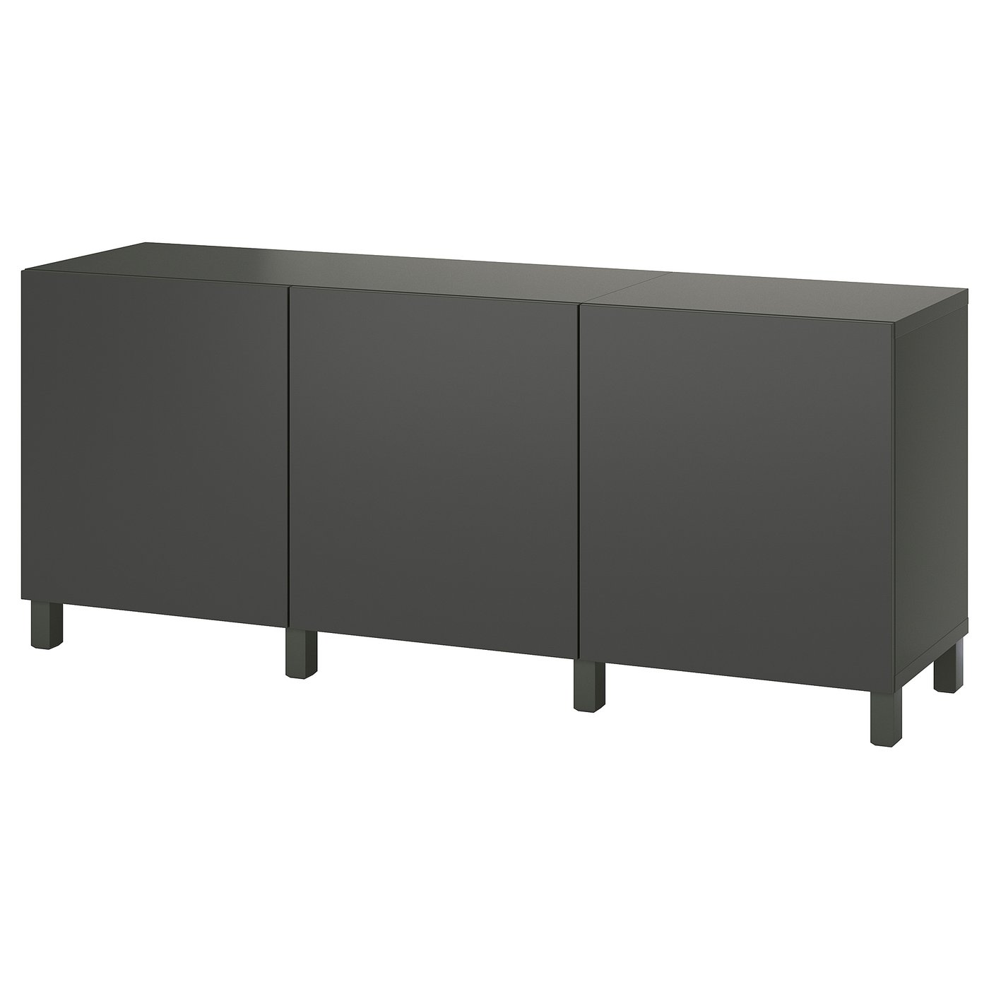 BESTÅ storage combination with doors, dark grey/Lappviken/Stubbarp dark grey, 180x42x74 cm, Top panel/ Bottom panel/ Side panel: Particle- and fibreboard with honeycomb paper filling. Everything you need for storing and keeping things organised at home. This is one of many, many possible combinations. Choose a ready-made one already now or create your own with BESTÅ planning tool.