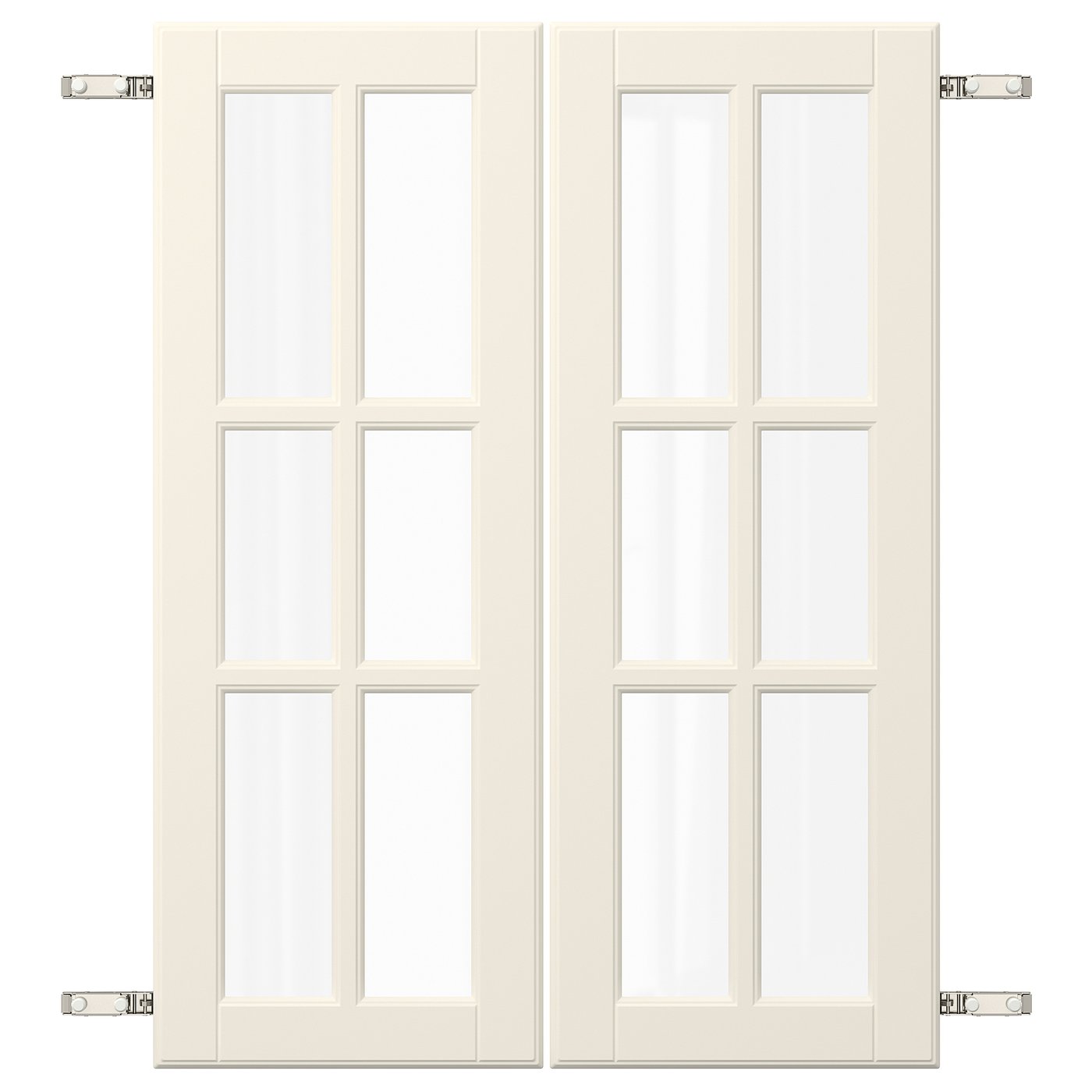 BODBYN door pair with hinges, off-white, 60x80 cm, Basematerial: Fibreboard.