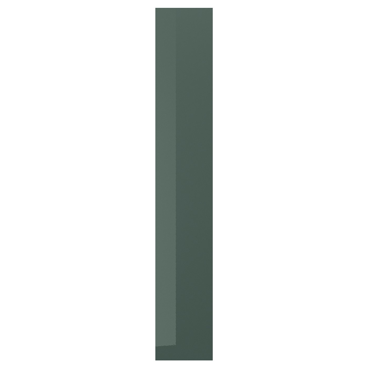 KALLARP cover panel, high-gloss dark grey-green, 39x240 cm, Basematerial: Particleboard. This cover panel matches KALLARP fronts in high-gloss grey-green perfectly, giving your kitchen an ultra-modern feel. Made partly from recycled materials at factories powered solely with renewable sources.