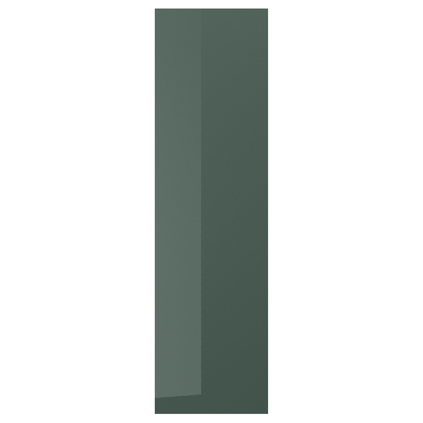 KALLARP cover panel, high-gloss dark grey-green, 62x220 cm, Basematerial: Particleboard. This cover panel matches KALLARP fronts in high-gloss grey-green perfectly, giving your kitchen an ultra-modern feel. Made partly from recycled materials at factories powered solely with renewable sources.