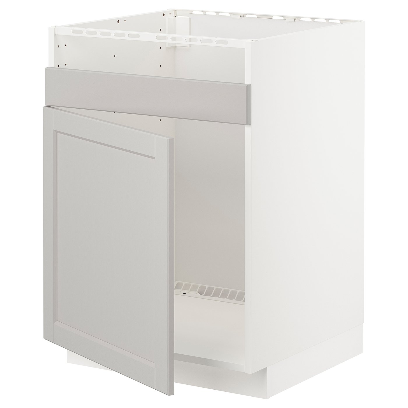 METOD base cab f HAVSEN single bowl sink, white/Lerhyttan light grey, 60x60 cm, Different wall materials require different types of fixing devices. Use fixing devices suitable for the walls in your home, sold separately, The hinge is adjustable in height, depth and width, Suspension rail sold separately, To be completed with legs and plinth, sold separately, To be completed with a knob or a handle, To be completed with METOD suspension rail for mounting the cabinet to the wall, IKEA of Sweden AB SE-343 81 Älmhult, IKEA.com, Sturdy frame construction, 18 mm thick. Snap-on hinges can be mounted on the door without screws, and you can easily remove the door for cleaning. 25 year guarantee. Read about the terms in the guarantee brochure, Frame: Particleboard. METOD kitchen system gives you endless possibilities to design your dream kitchen. Paired with light grey LERHYTTAN fronts with bevelled edges, your kitchen gets a classic, traditional look.