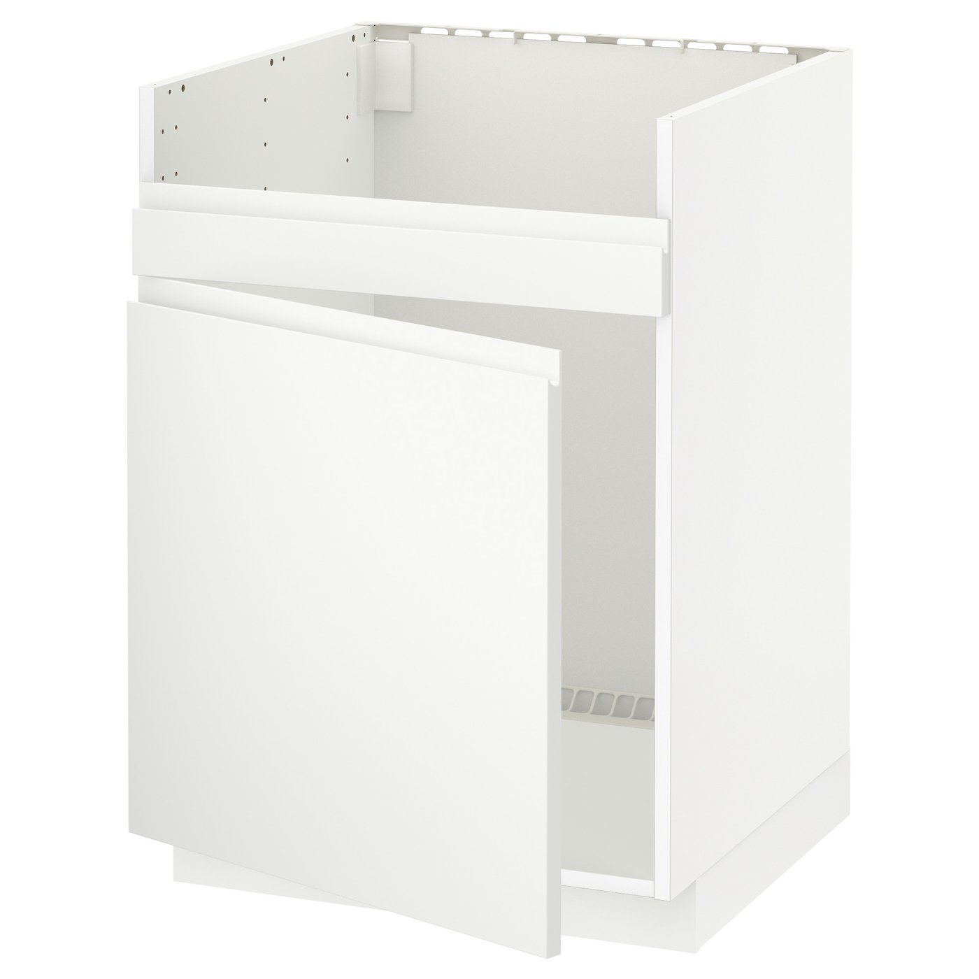 METOD base cab f HAVSEN single bowl sink, white/Voxtorp matt white, 60x60 cm, Different wall materials require different types of fixing devices. Use fixing devices suitable for the walls in your home, sold separately, To be completed with METOD suspension rail for mounting the cabinet to the wall, The hinge is adjustable in height, depth and width, Suspension rail sold separately, To be completed with legs and plinth, sold separately, IKEA of Sweden AB SE-343 81 Älmhult, IKEA.com, Sturdy frame construction, 18 mm thick. Snap-on hinges can be mounted on the door without screws, and you can easily remove the door for cleaning. 25 year guarantee. Read about the terms in the guarantee brochure, Front: Fibreboard. METOD kitchen system gives you endless possibilities to design your dream kitchen. Paired with VOXTORP fronts in matte white with integrated handles, you get a modern and minimalist expression.