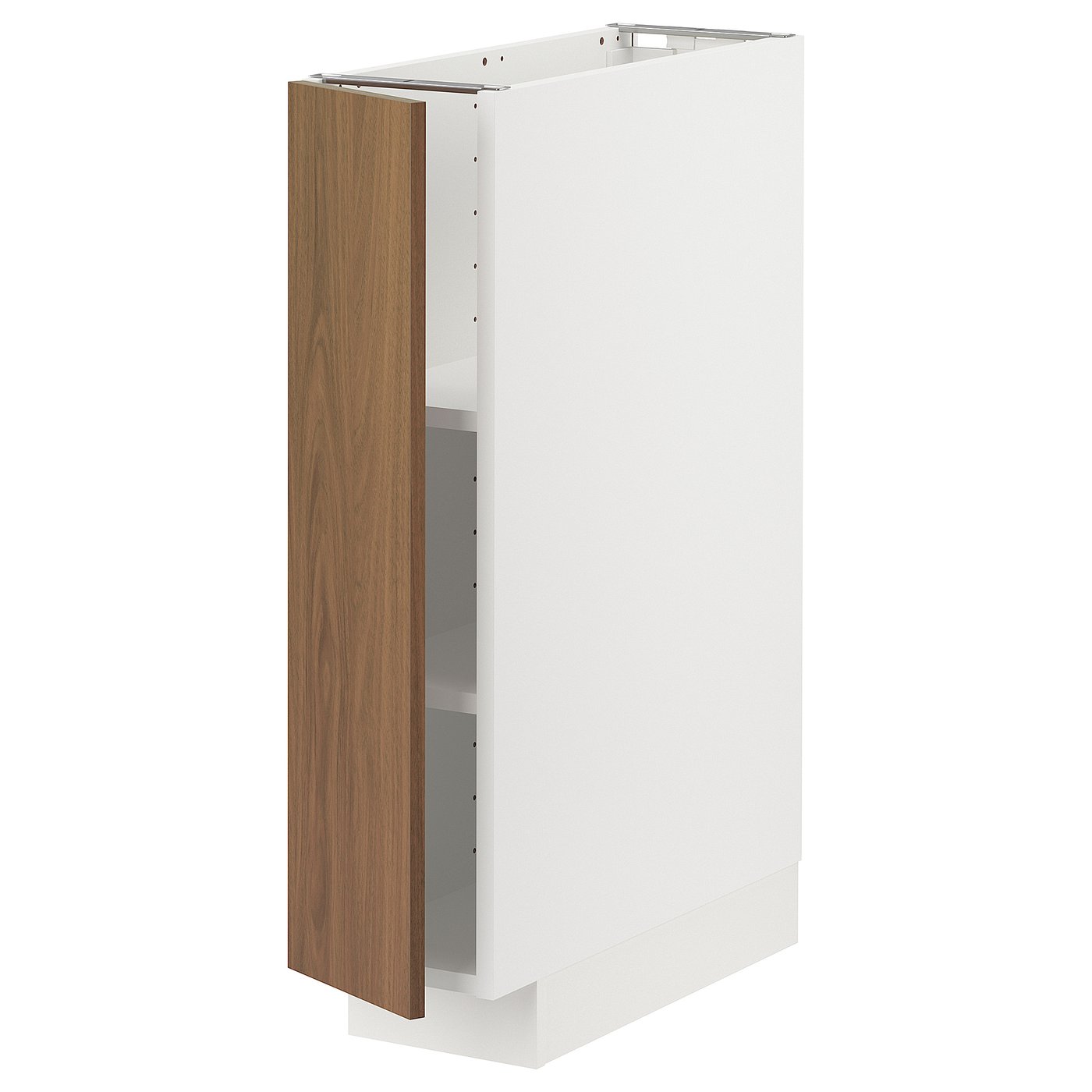 METOD base cabinet with shelves, white/Tistorp brown walnut effect, 20x60 cm, Particleboard. METOD kitchen system gives you endless possibilities to design your dream kitchen. Paired with TISTORP fronts you get a modern walnut look with smooth surface and simple design that is easy on the eyes.