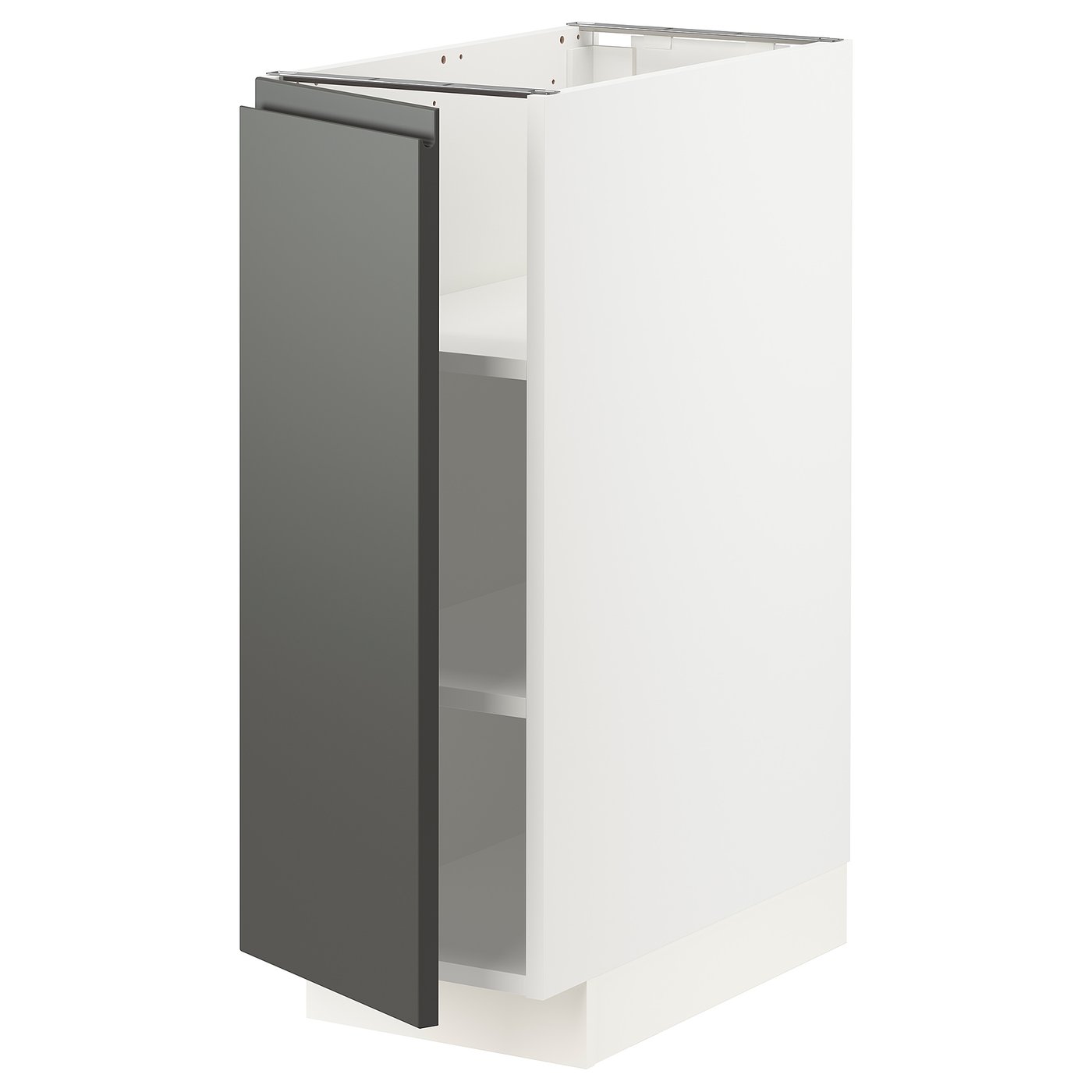 METOD base cabinet with shelves, white/Voxtorp dark grey, 30x60 cm, Basematerial: Particleboard. METOD kitchen system gives you endless possibilities to design your dream kitchen. Paired with VOXTORP fronts in matt dark grey with integrated handles, you get a modern look that feels warm and calming.