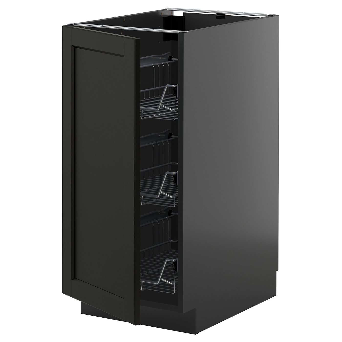 METOD base cabinet with wire baskets, black-grey/Lerhyttan black stained, 40x60 cm, Frame: Solid ash. METOD kitchen system gives you endless possibilities to design your dream kitchen. Paired with black stained LERHYTTAN fronts with bevelled edges, your kitchen gets a warm and traditional character.