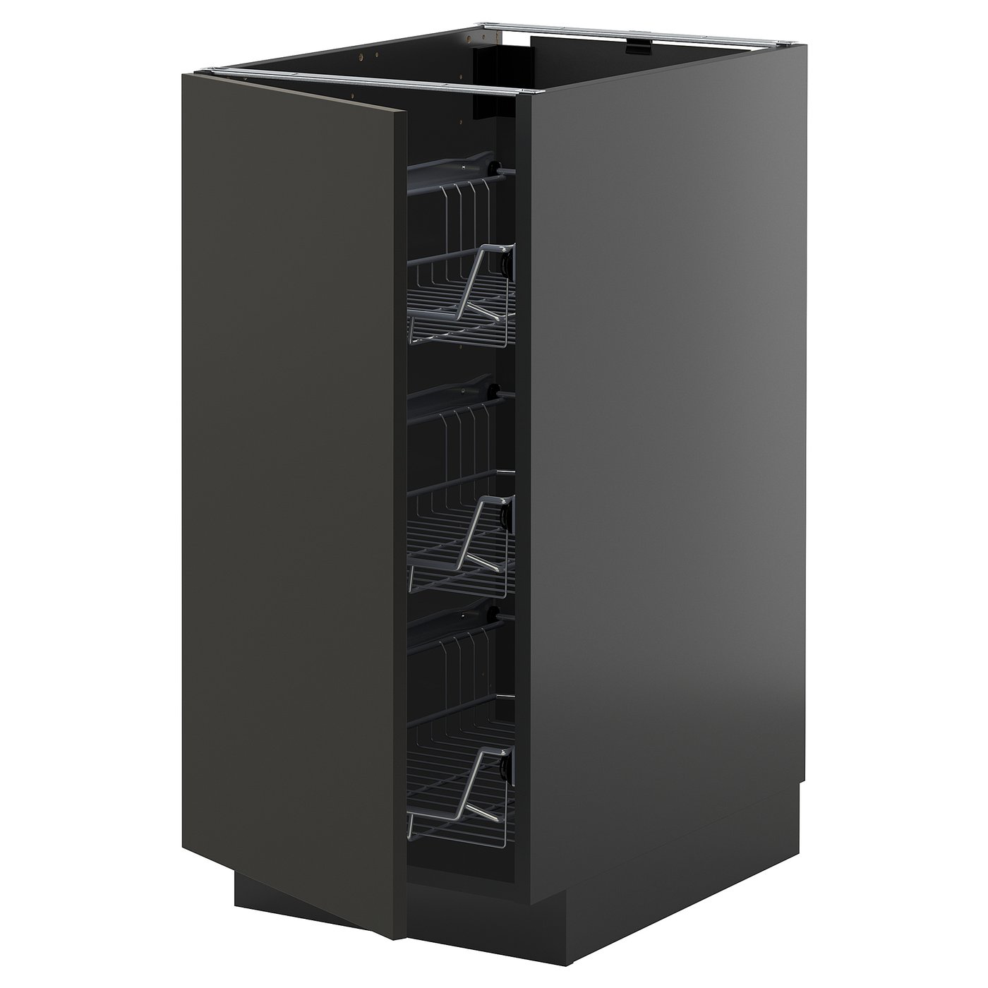 METOD base cabinet with wire baskets, black-grey/Nickebo matt anthracite, 40x60 cm, Basematerial: Particleboard. METOD kitchen system gives you endless possibilities to design your dream kitchen. Paired with NICKEBO fronts in matt black, you get a stylish and modern look that is easy to personalise.