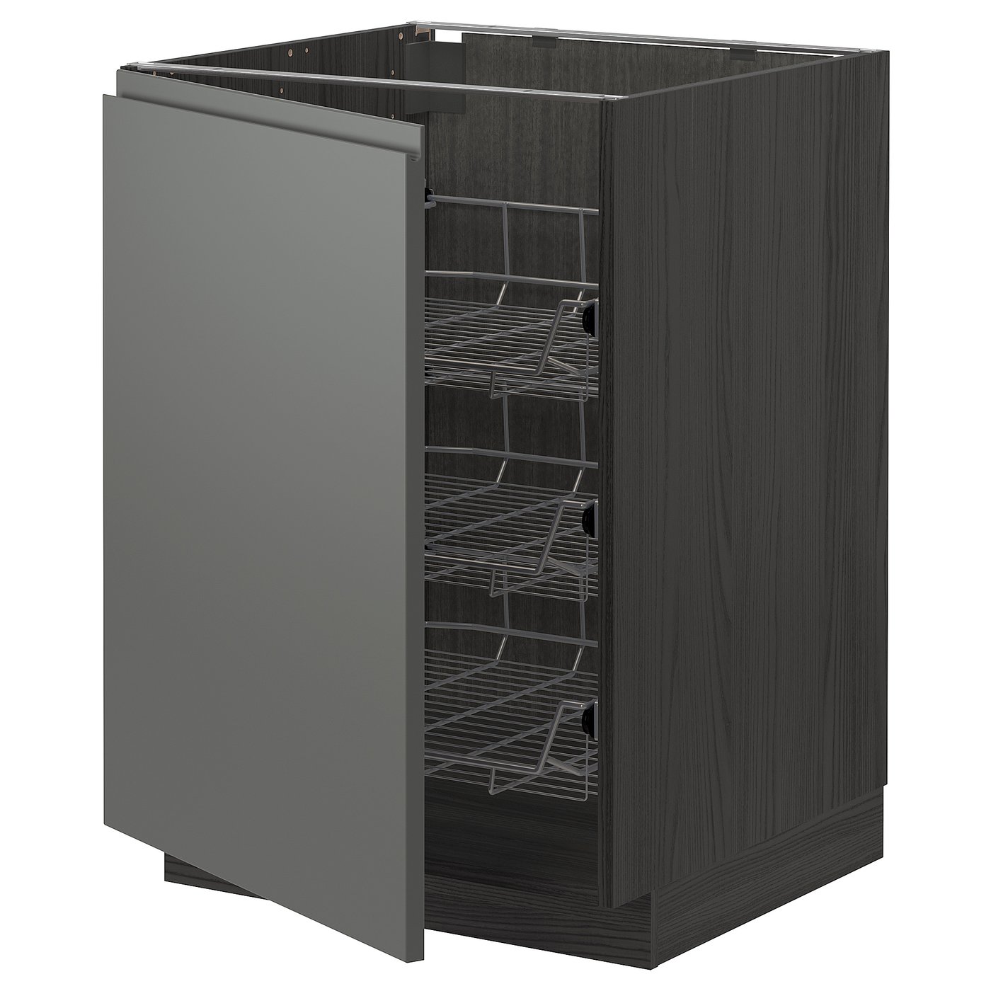 METOD base cabinet with wire baskets, black/Voxtorp dark grey, 60x60 cm, Basematerial: Particleboard. METOD kitchen system gives you endless possibilities to design your dream kitchen. Paired with VOXTORP fronts in matt dark grey with integrated handles, you get a modern look that feels warm and calming.