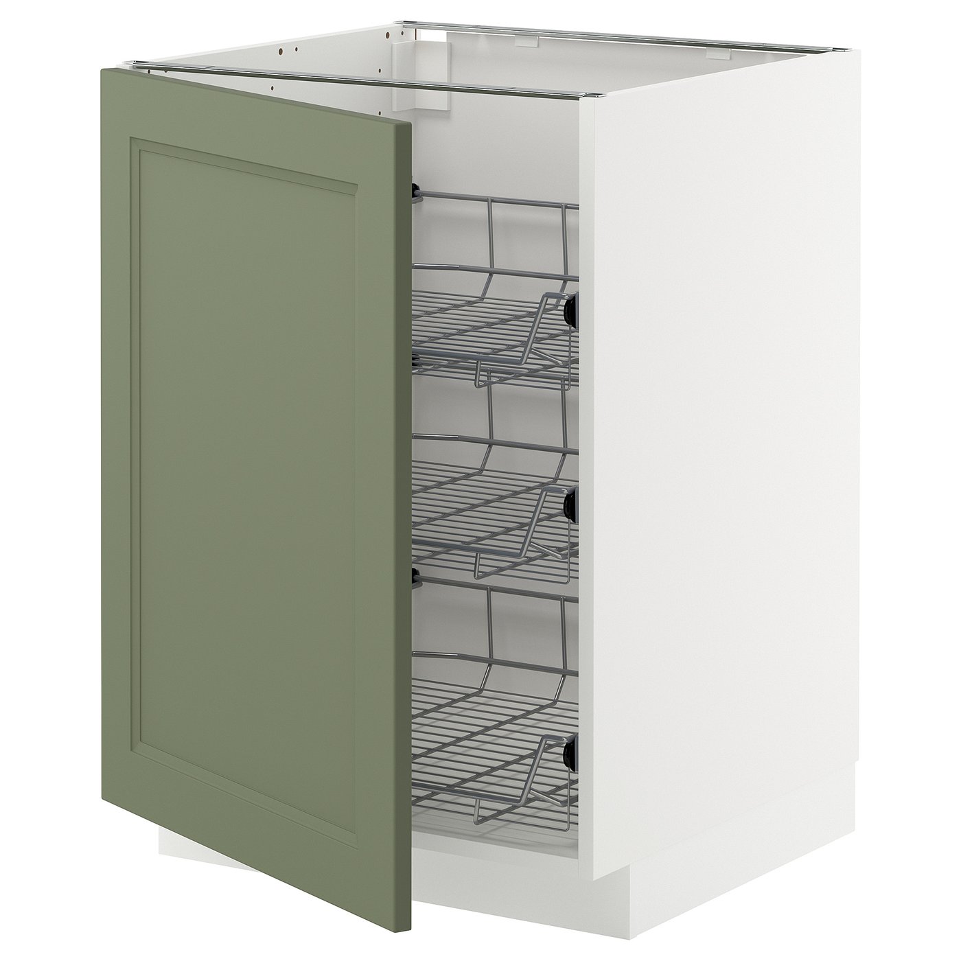 METOD base cabinet with wire baskets, white/Axstad grey-green, 60x60 cm, Basematerial: Fibreboard. METOD kitchen system gives you endless possibilities to design your dream kitchen. Paired with AXSTAD fronts in grey-green, you get a timeless look that can feel either modern or traditional.