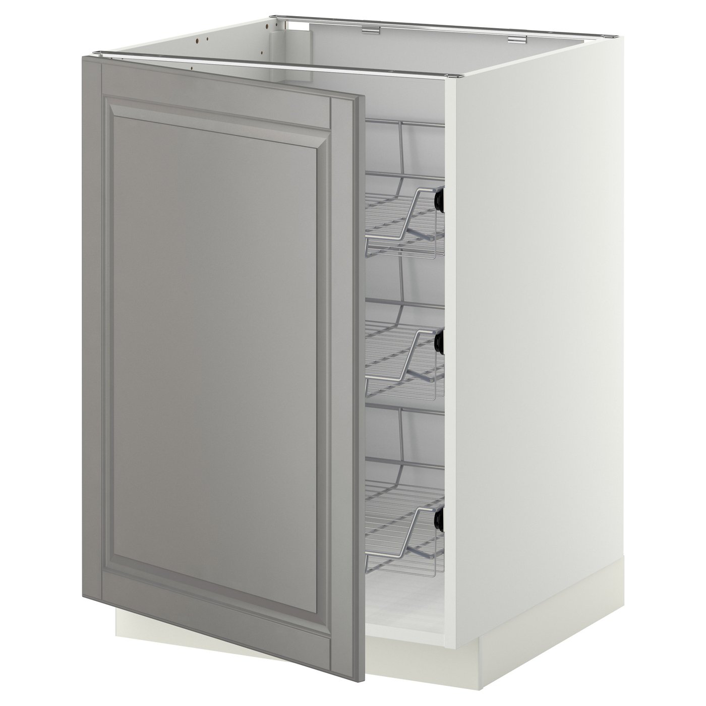 METOD base cabinet with wire baskets, white/Bodbyn grey, 60x60 cm, Fibreboard. METOD kitchen system gives you endless possibilities to design your dream kitchen. Paired with BODBYN fronts in soft grey with bevelled edges you create a traditional look with a warm and welcoming feel.