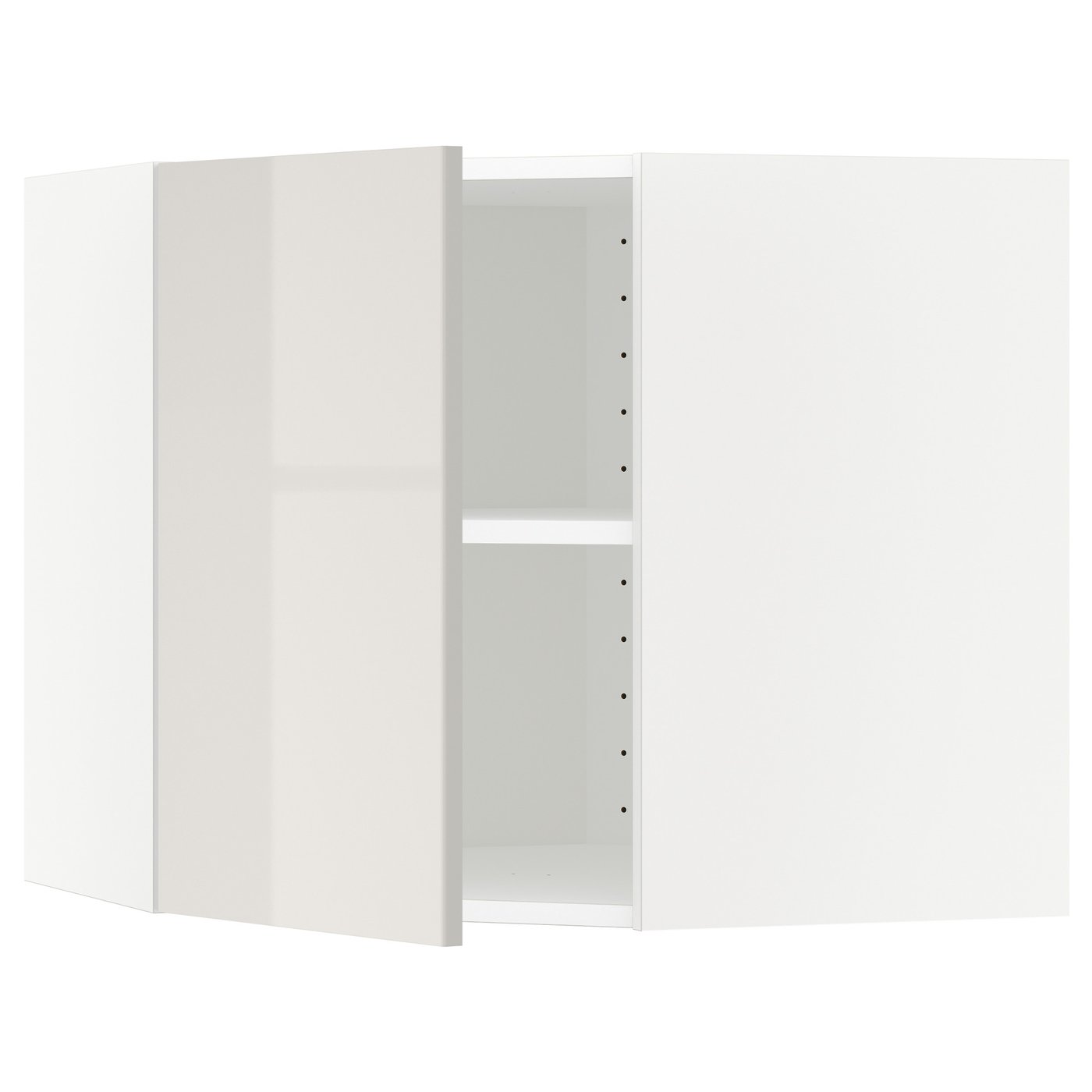 IKEA METOD corner wall cabinet with shelves, white/Ringhult light grey, 68x60 cm
