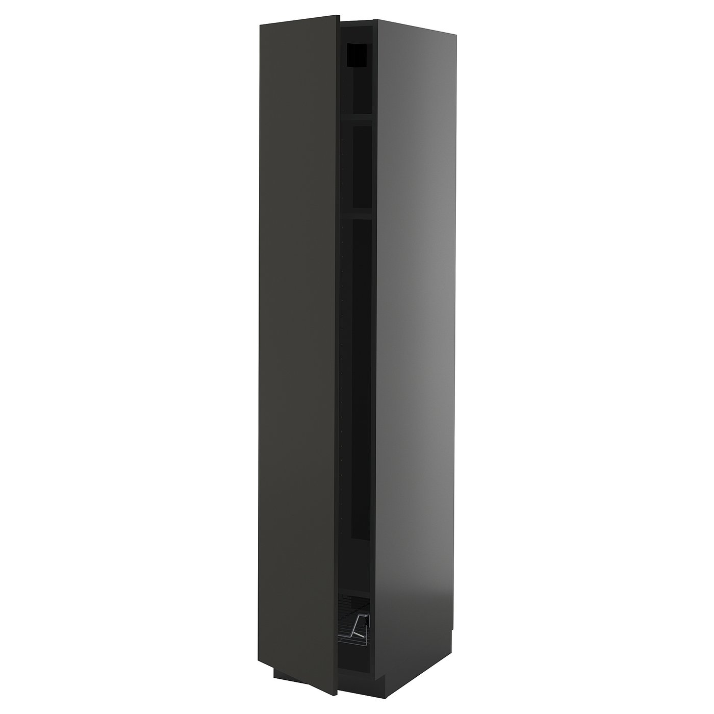 METOD high cabinet w shelves/wire basket, black-grey/Nickebo matt anthracite, 40x60x200 cm, Basematerial: Particleboard. METOD kitchen system gives you endless possibilities to design your dream kitchen. Paired with NICKEBO fronts in matt black, you get a stylish and modern look that is easy to personalise.