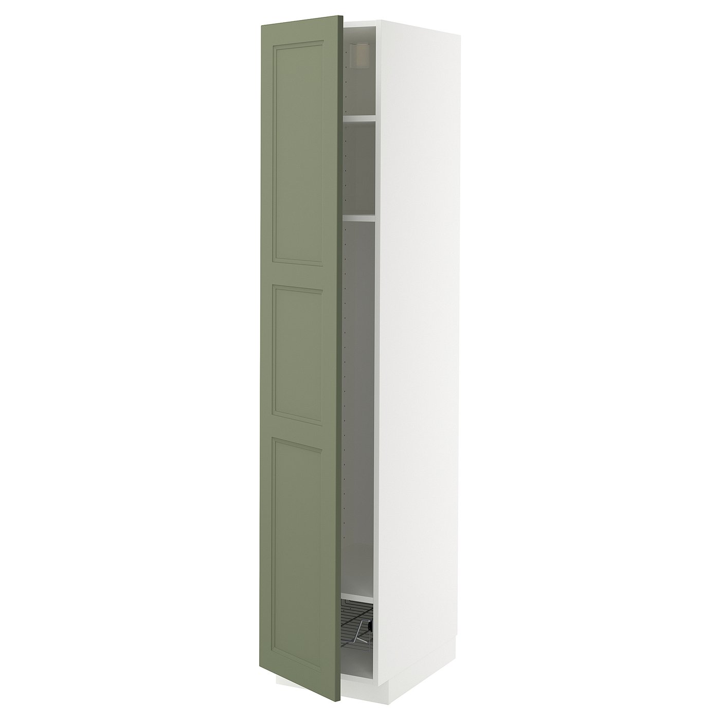 METOD high cabinet w shelves/wire basket, white/Axstad grey-green, 40x60x200 cm, Basematerial: Fibreboard. METOD kitchen system gives you endless possibilities to design your dream kitchen. Paired with AXSTAD fronts in grey-green, you get a timeless look that can feel either modern or traditional.