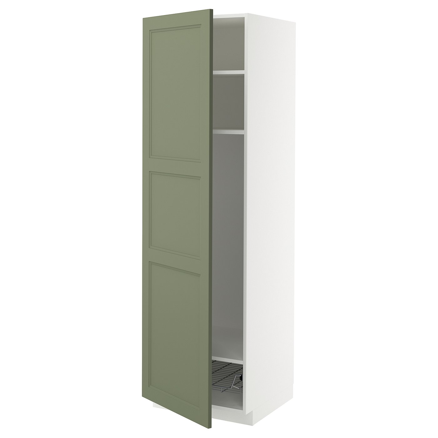 METOD high cabinet w shelves/wire basket, white/Axstad grey-green, 60x60x200 cm, Basematerial: Fibreboard. METOD kitchen system gives you endless possibilities to design your dream kitchen. Paired with AXSTAD fronts in grey-green, you get a timeless look that can feel either modern or traditional.
