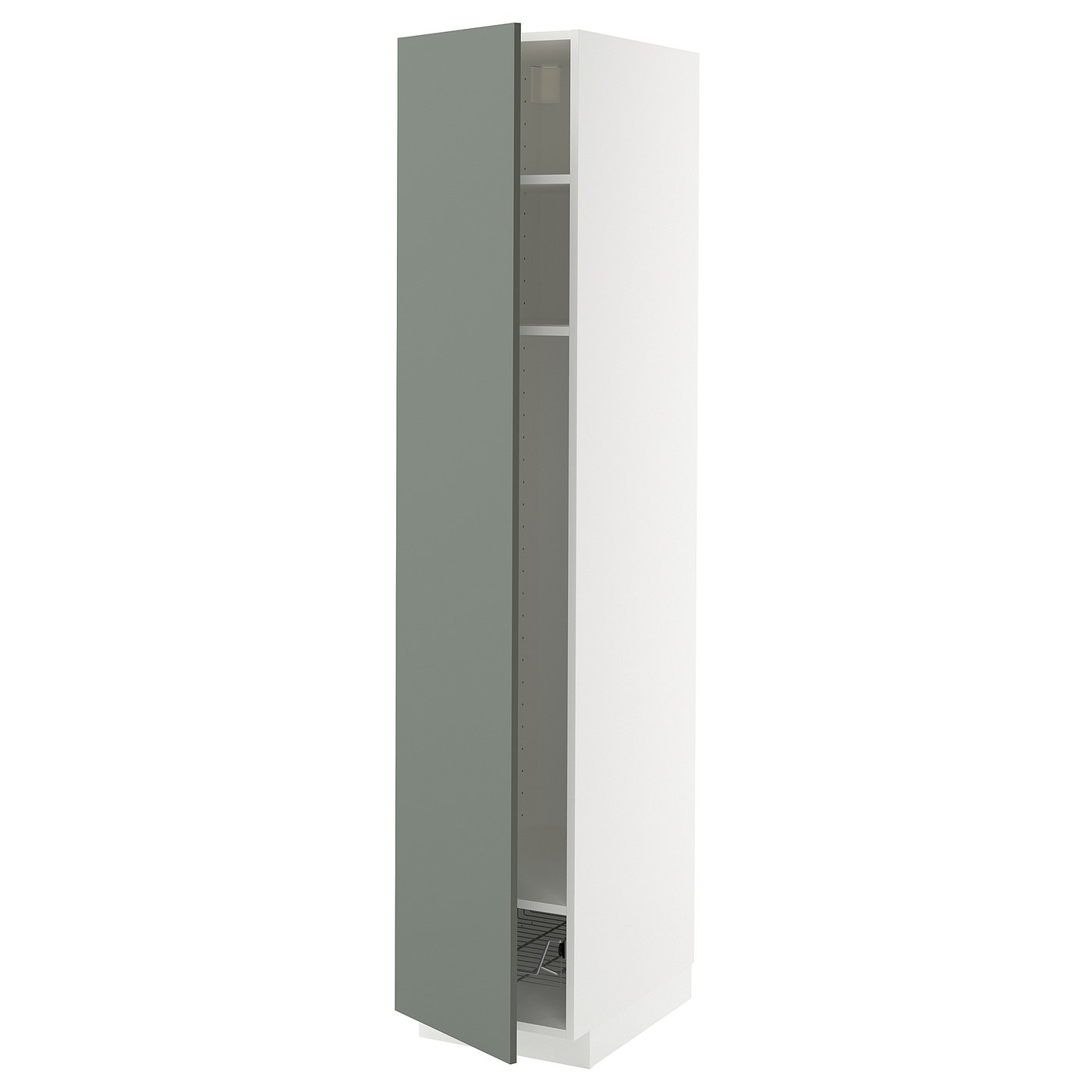 METOD high cabinet w shelves/wire basket, white/Nickebo matt grey-green, 40x60x200 cm, Basematerial: Particleboard. METOD kitchen system gives you endless possibilities to design your dream kitchen. Paired with NICKEBO fronts in matt grey-green you get a harmonious and modern look that is easy to personalise.