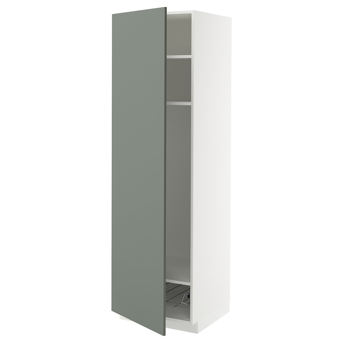 METOD high cabinet w shelves/wire basket, white/Nickebo matt grey-green, 60x60x200 cm, Basematerial: Particleboard. METOD kitchen system gives you endless possibilities to design your dream kitchen. Paired with NICKEBO fronts in matt grey-green you get a harmonious and modern look that is easy to personalise.
