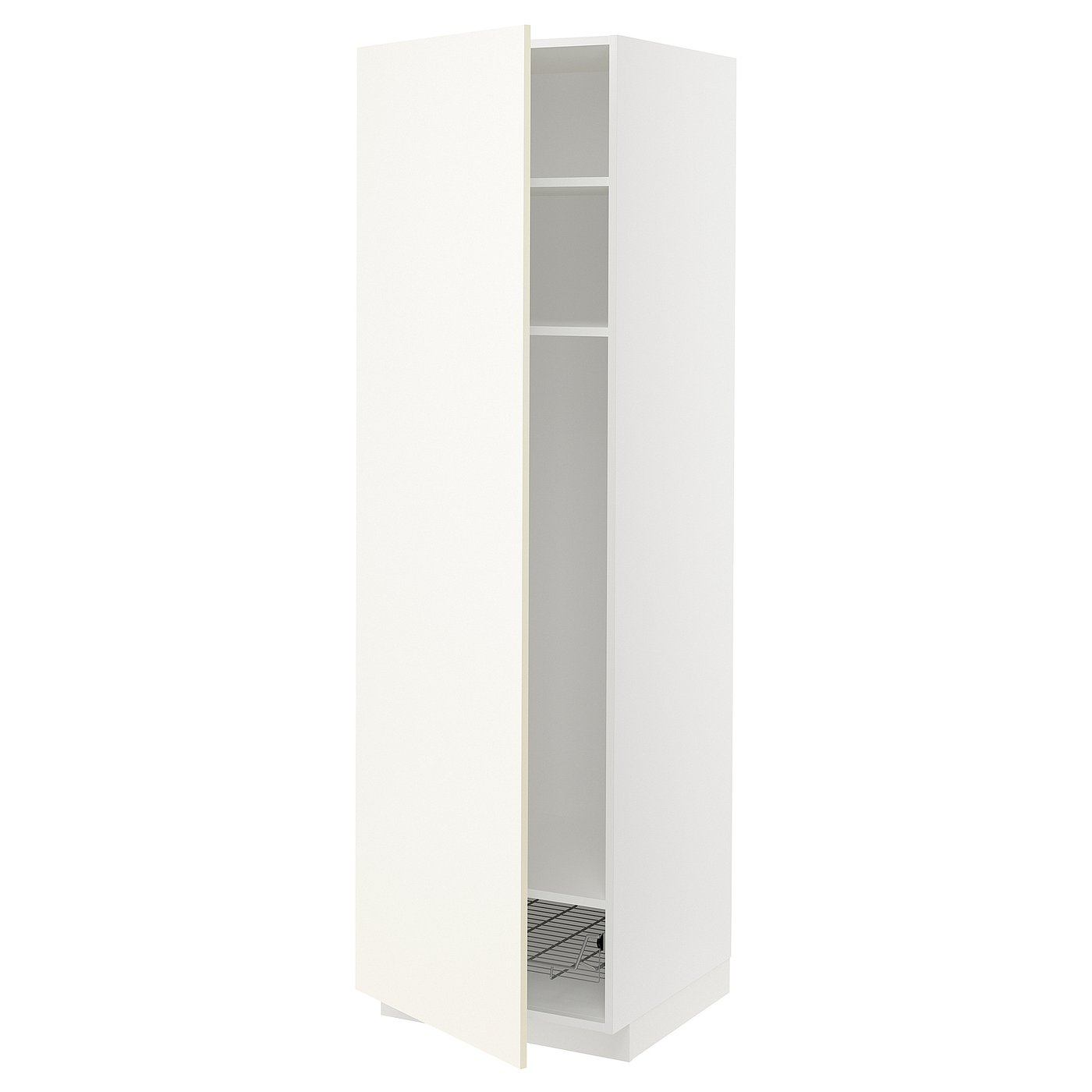 METOD high cabinet w shelves/wire basket, white/Vallstena white, 60x60x200 cm, Basematerial: Particleboard. METOD kitchen system gives you endless possibilities to design your dream kitchen. Paired with VALLSTENA fronts in white, you get a timeless expression that always feels right.