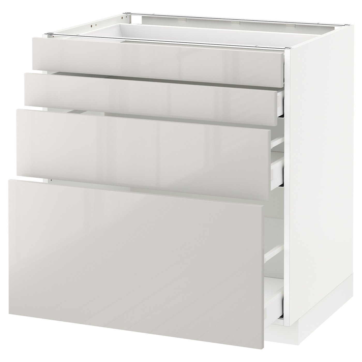 METOD / MAXIMERA base cab 4 frnts/4 drawers, white/Ringhult light grey, 80x60 cm, Front: Particleboard. METOD kitchen system gives you endless possibilities to design your dream kitchen. Paired with RINGHULT high gloss grey fronts, your kitchen gets a modern and spacious feel and is easy to wipe clean.