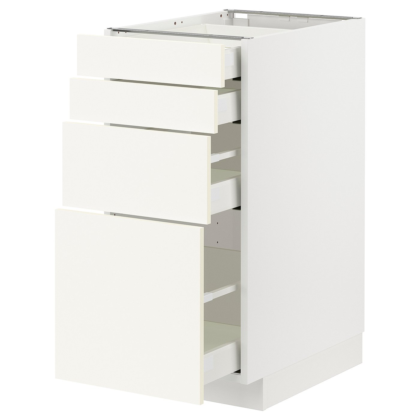 METOD / MAXIMERA base cab 4 frnts/4 drawers, white/Vallstena white, 40x60 cm, Basematerial: Particleboard. METOD kitchen system gives you endless possibilities to design your dream kitchen. Paired with VALLSTENA fronts in white, you get a timeless expression that always feels right.