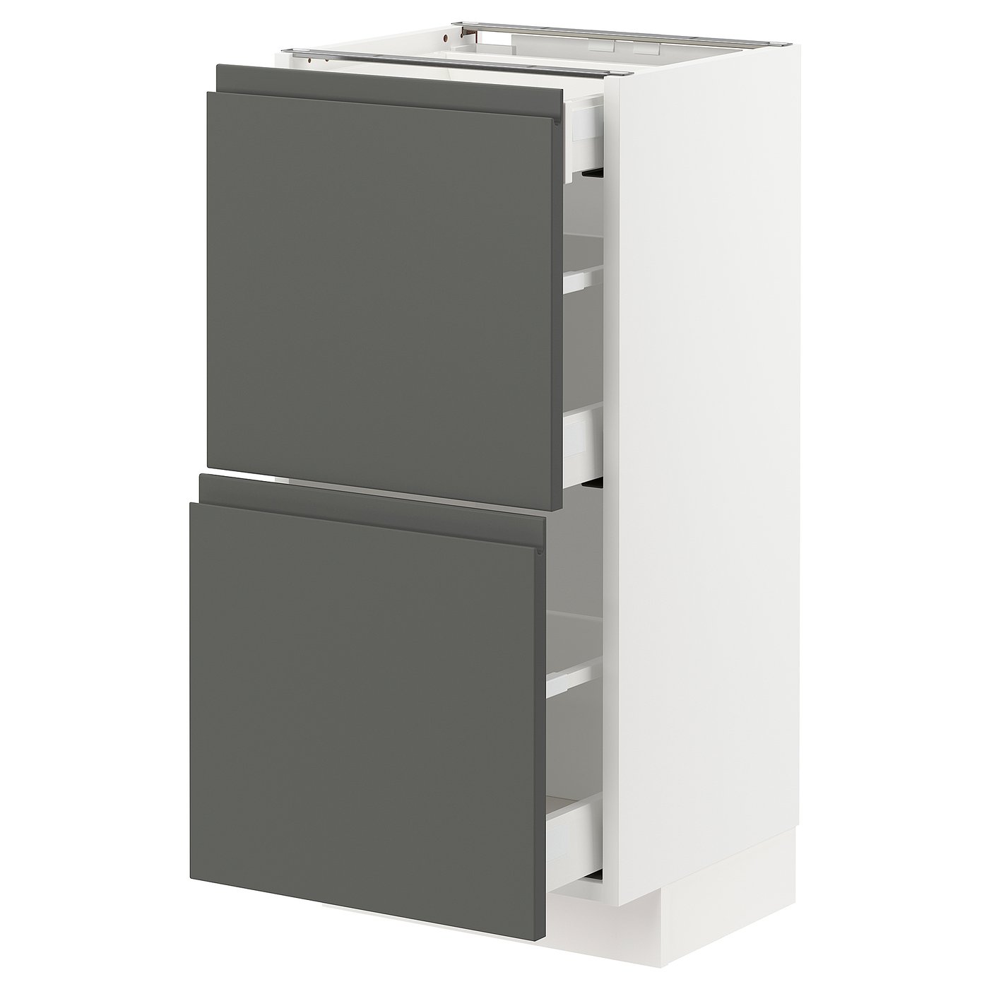 METOD / MAXIMERA base cab with 2 fronts/3 drawers, white/Voxtorp dark grey, 40x37 cm, Basematerial: Particleboard. METOD kitchen system gives you endless possibilities to design your dream kitchen. Paired with VOXTORP fronts in matt dark grey with integrated handles, you get a modern look that feels warm and calming.