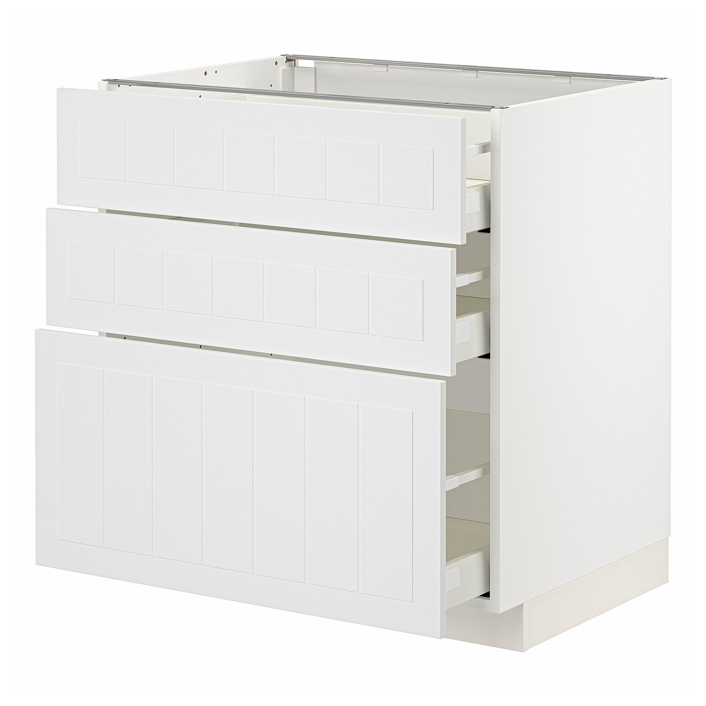 METOD / MAXIMERA base cabinet with 3 drawers, white/Stensund white, 80x60 cm, Fibreboard. METOD kitchen system gives you endless possibilities to design your dream kitchen. Paired with STENSUND fronts in white, you get a kitchen with a light and crafted look.
