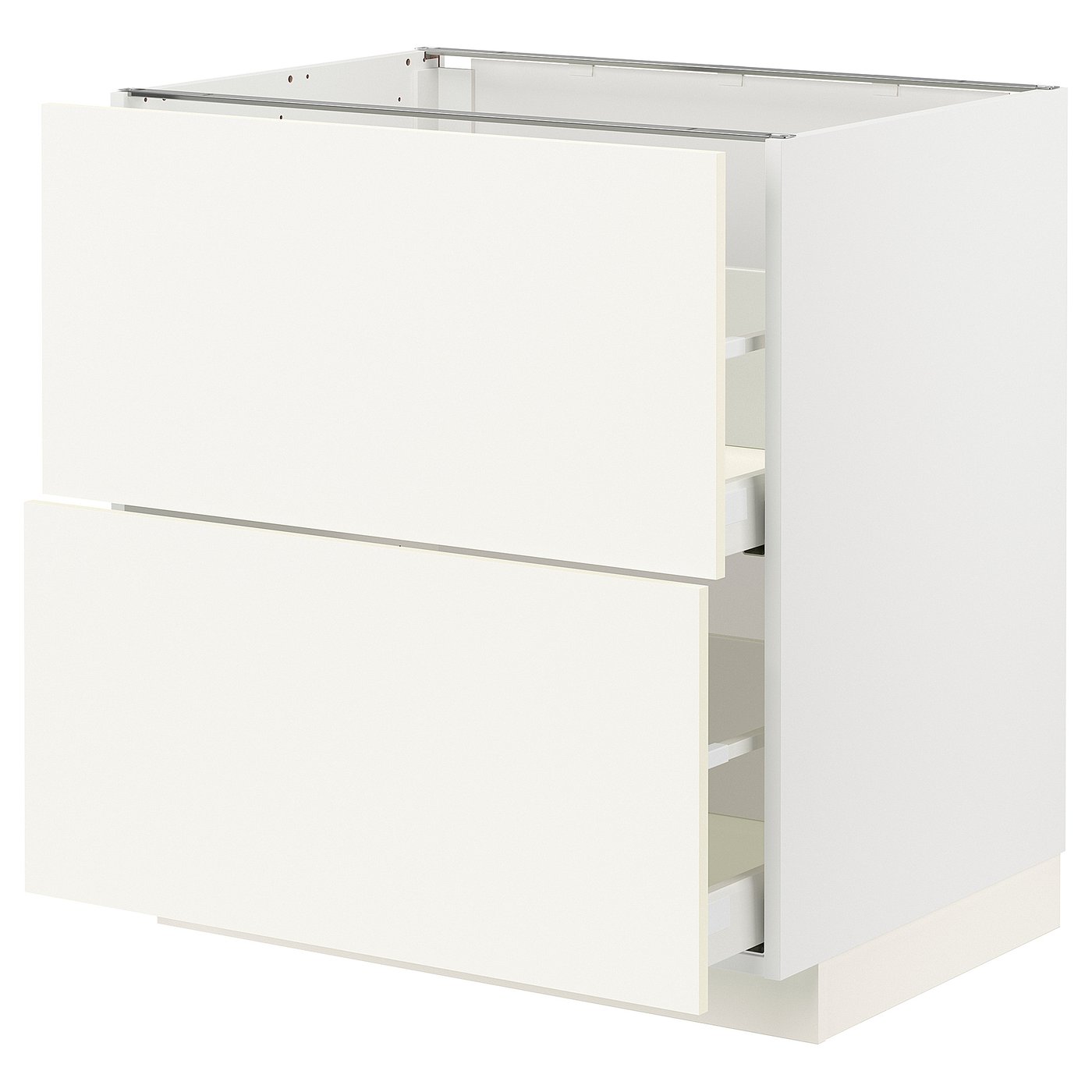 METOD / MAXIMERA base cb 2 fronts/2 high drawers, white/Vallstena white, 80x60 cm, Basematerial: Particleboard. METOD kitchen system gives you endless possibilities to design your dream kitchen. Paired with VALLSTENA fronts in white, you get a timeless expression that always feels right.