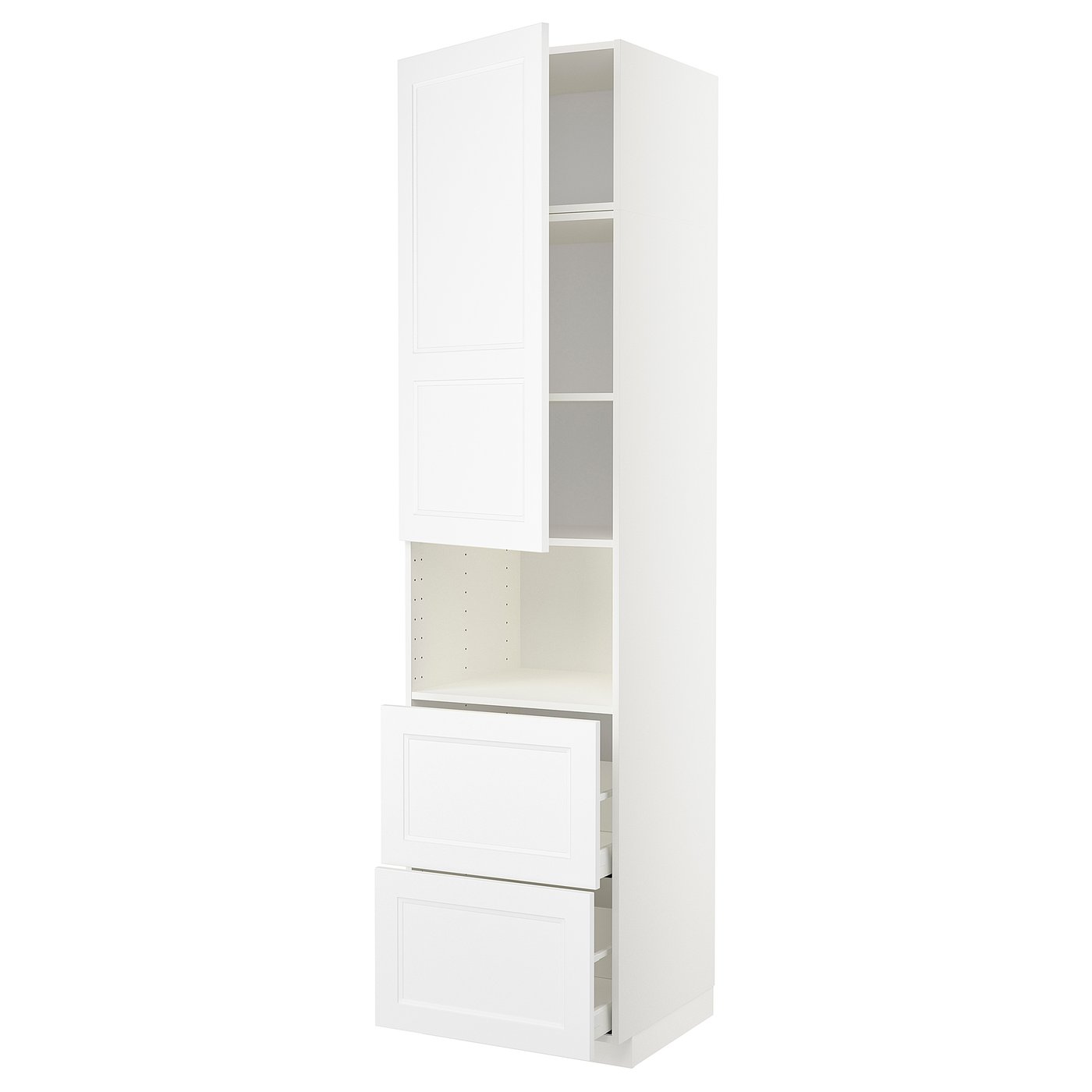 METOD / MAXIMERA hi cab f micro w door/2 drawers, white/Axstad matt white, 60x60x240 cm, Basematerial: Fibreboard. METOD kitchen system gives you endless possibilities to design your dream kitchen. Paired with AXSTAD fronts in white, you get a timeless look that can feel either modern or traditional.