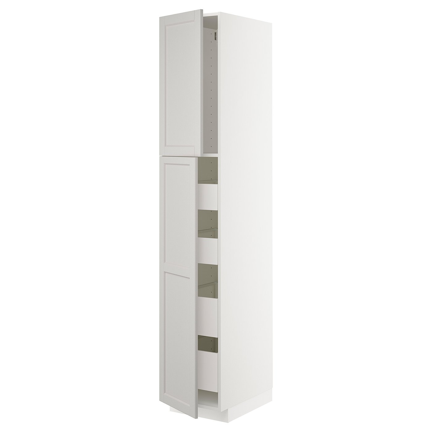 IKEA METOD / MAXIMERA hi cab w 2 doors/4 drawers, white/Lerhyttan light grey, 40x60x220 cm