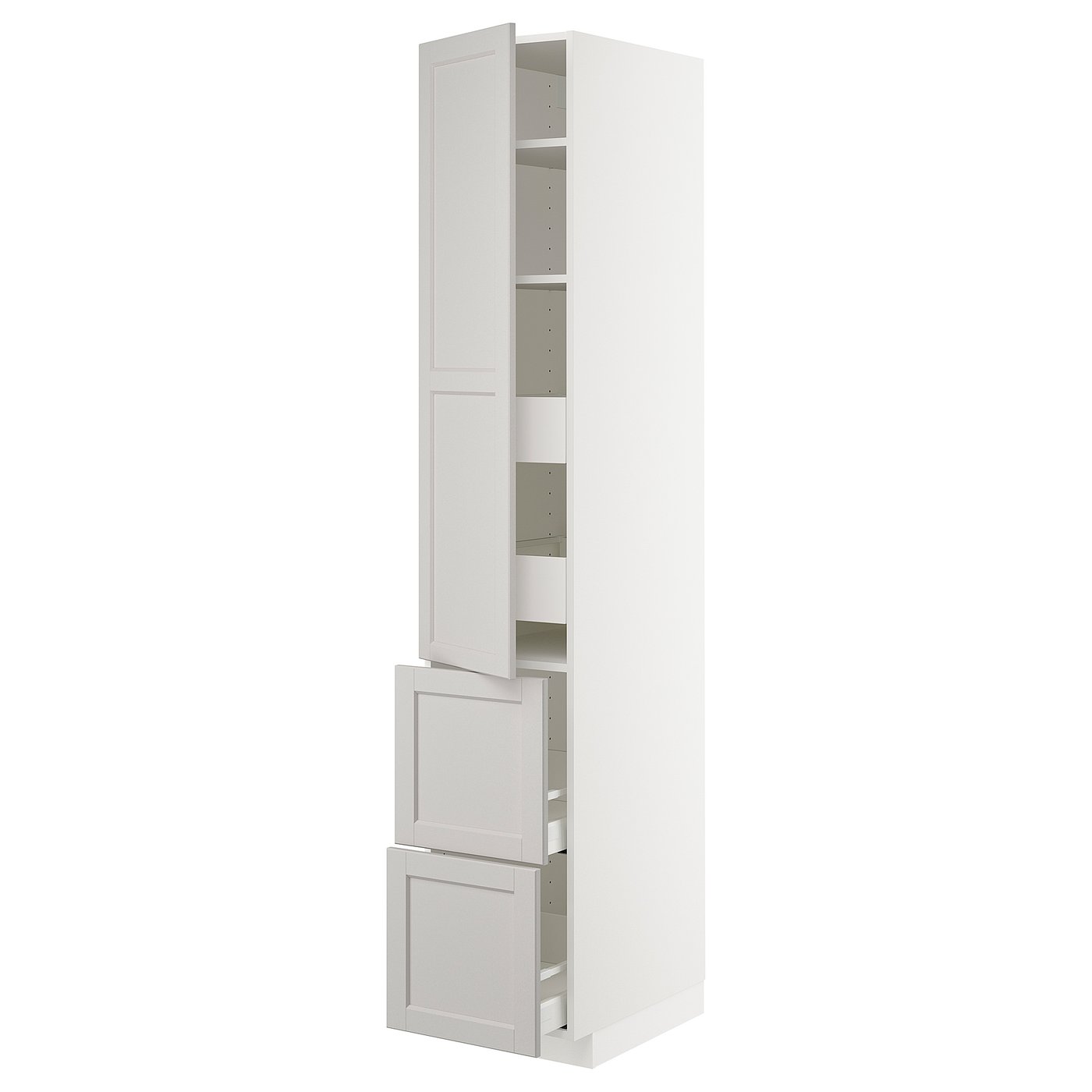 IKEA METOD / MAXIMERA hi cab w shlvs/4 drawers/dr/2 frnts, white/Lerhyttan light grey, 40x60x220 cm