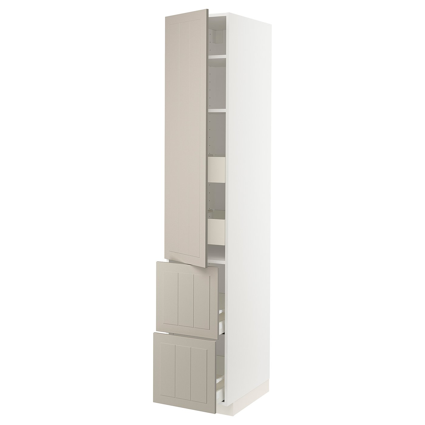 METOD / MAXIMERA hi cab w shlvs/4 drawers/dr/2 frnts, white/Stensund beige, 40x60x220 cm, Fibreboard. METOD kitchen system gives you endless possibilities to design your dream kitchen. Paired with STENSUND fronts in beige, you get a kitchen with a warm and crafted look.