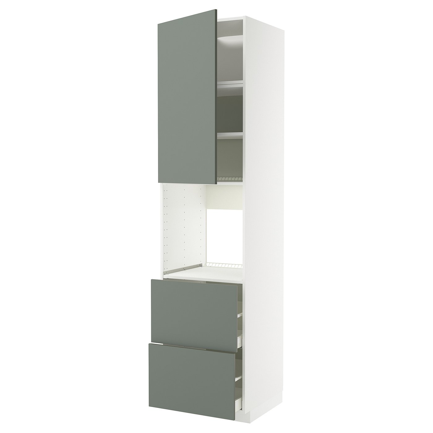 METOD / MAXIMERA high cabinet f oven+door/2 drawers, white/Nickebo matt grey-green, 60x60x240 cm, Basematerial: Particleboard. METOD kitchen system gives you endless possibilities to design your dream kitchen. Paired with NICKEBO fronts in matt grey-green you get a harmonious and modern look that is easy to personalise.