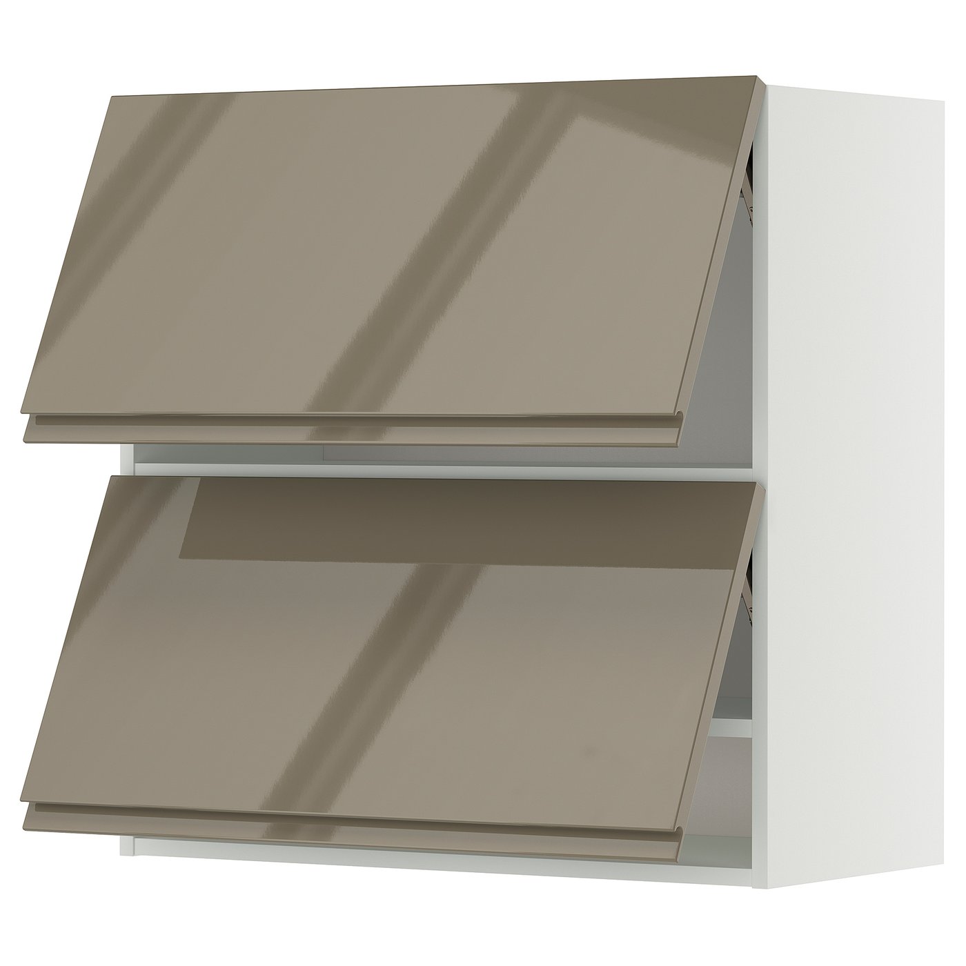 METOD wall cab horizo 2 doors w push-open, white/Voxtorp high-gloss dark grey-brown, 80x80 cm, Front: Fibreboard. METOD kitchen system gives you endless possibilities to design your dream kitchen. Paired with VOXTORP fronts in high gloss dark grey-brown with integrated handles, you get a sleek and elegant expression.