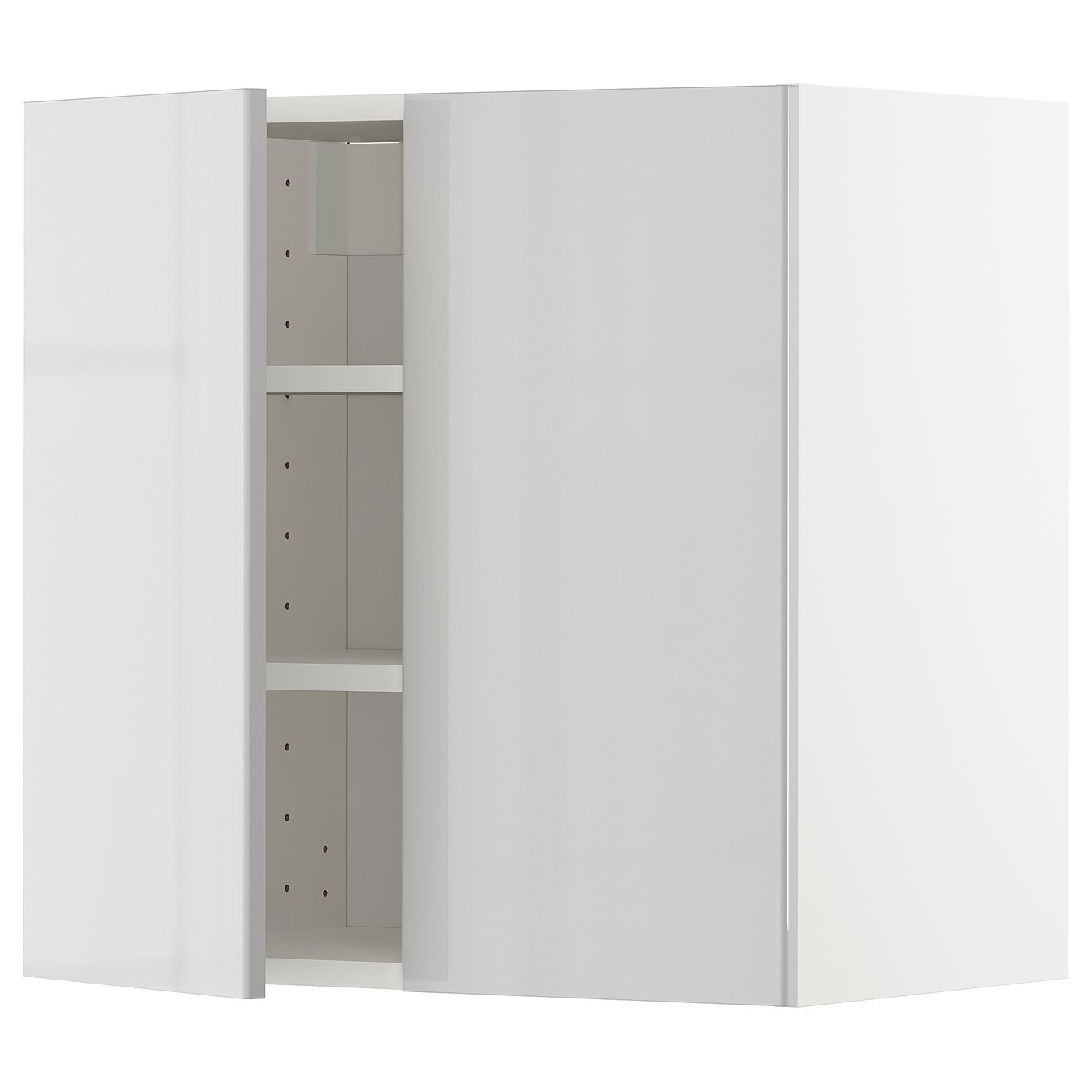 METOD wall cabinet with shelves/2 doors, white/Ringhult light grey, 60x60 cm, Front: Particleboard. METOD kitchen system gives you endless possibilities to design your dream kitchen. Paired with RINGHULT high gloss grey fronts, your kitchen gets a modern and spacious feel and is easy to wipe clean.