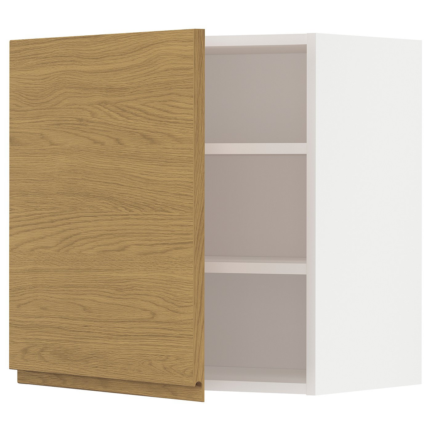 METOD wall cabinet with shelves, white/Voxtorp oak effect, 60x60 cm, Basematerial: Particleboard. METOD kitchen system gives you endless possibilities to design your dream kitchen. Paired with VOXTORP fronts with oak expression and integrated handles you get a minimalist look with a warm feel.
