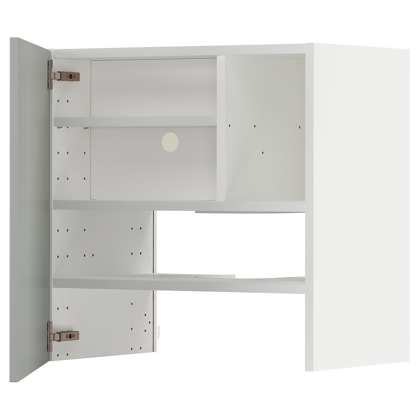 METOD wall cb f extr hood w shlf/door, white/Havstorp light grey, 60x60 cm, Fibreboard. METOD kitchen system gives you endless possibilities to design your dream kitchen. Paired with HAVSTORP fronts in a timeless light grey tone you get a modern clean look that feels neutral and harmonious.