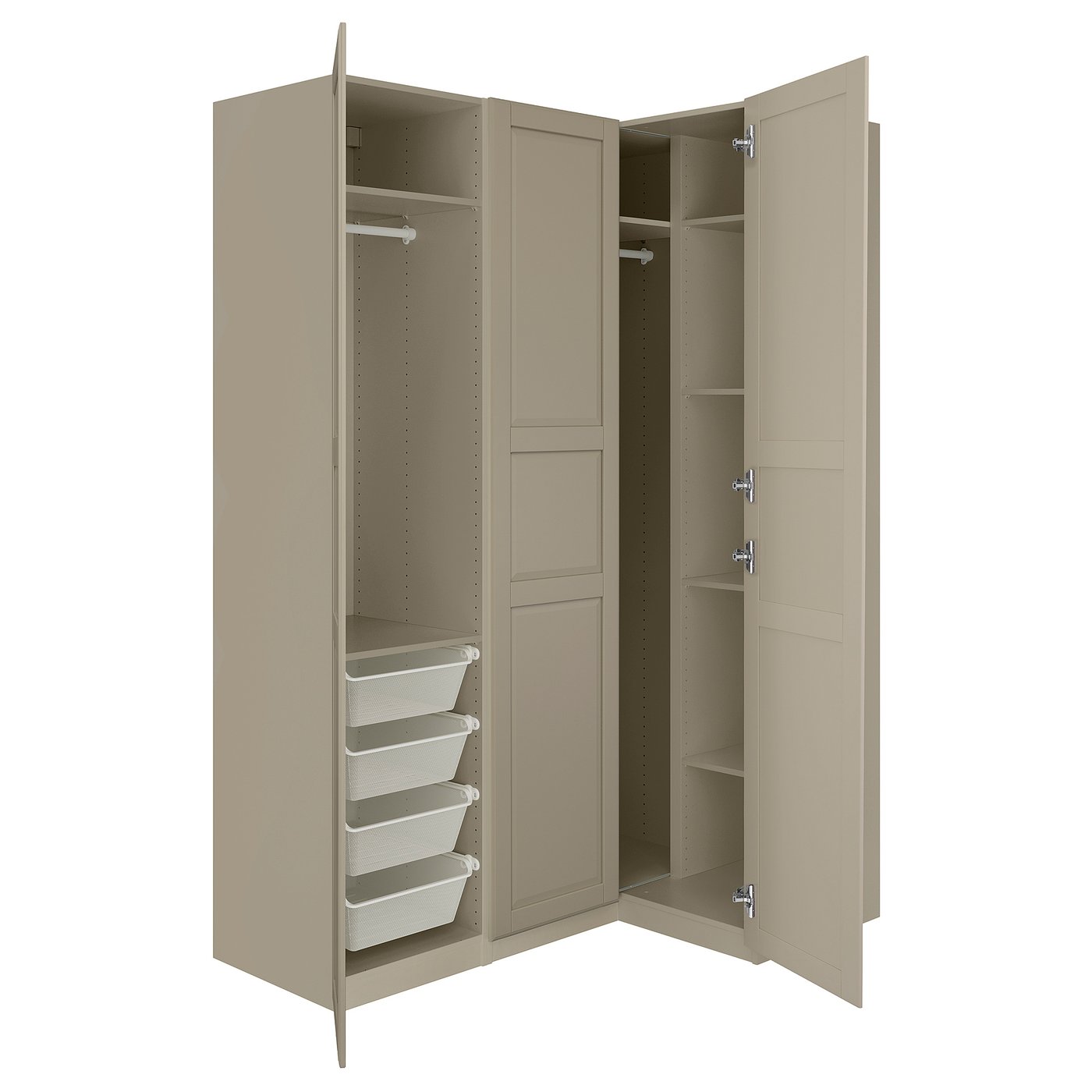 IKEA PAX / TYSSEDAL corner wardrobe, grey-beige/grey-beige, 161/111x236 cm