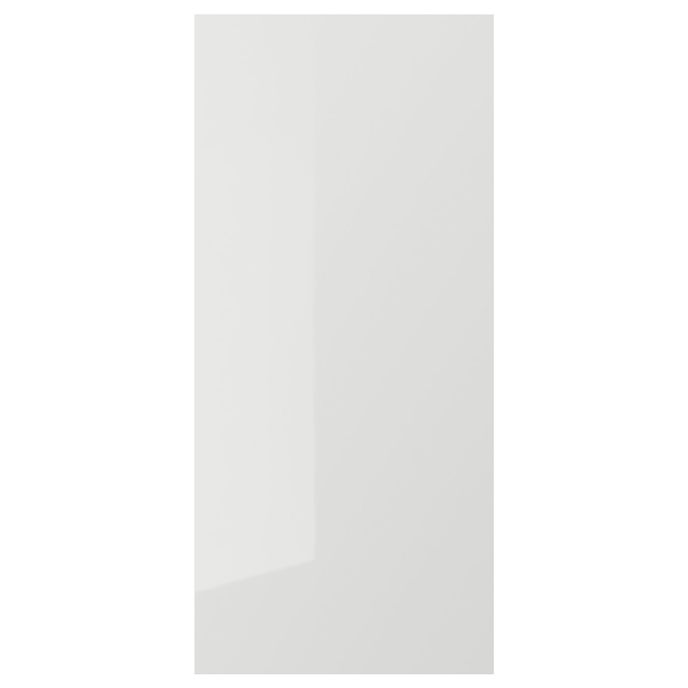 RINGHULT cover panel, high-gloss light grey, 39x86 cm, Front: Particleboard. RINGHULT fronts with grey, high gloss surface create a modern and spacious feel. They endure moisture and bumps, and stains wipe off easily so your kitchen will always be shiny and clean.
