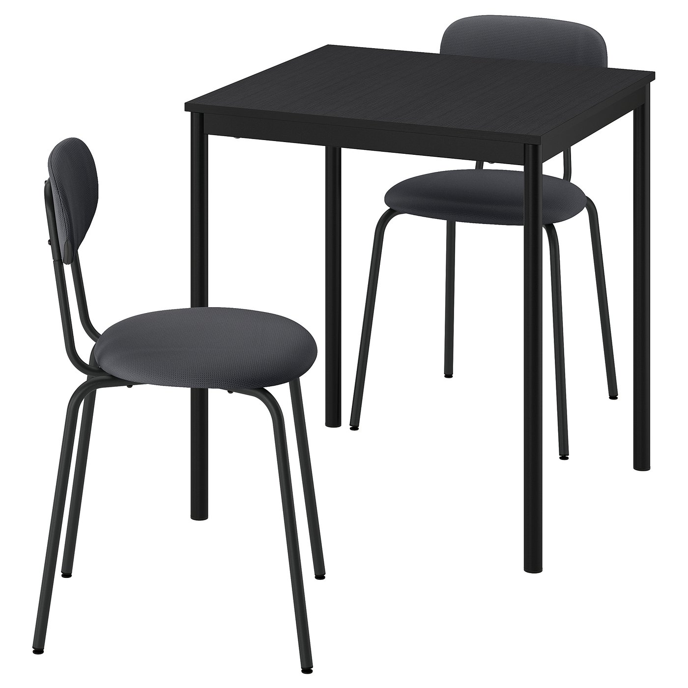 IKEA SANDSBERG table and 2 chairs, black black/Remmarn anthracite anthracite, 67x67 cm