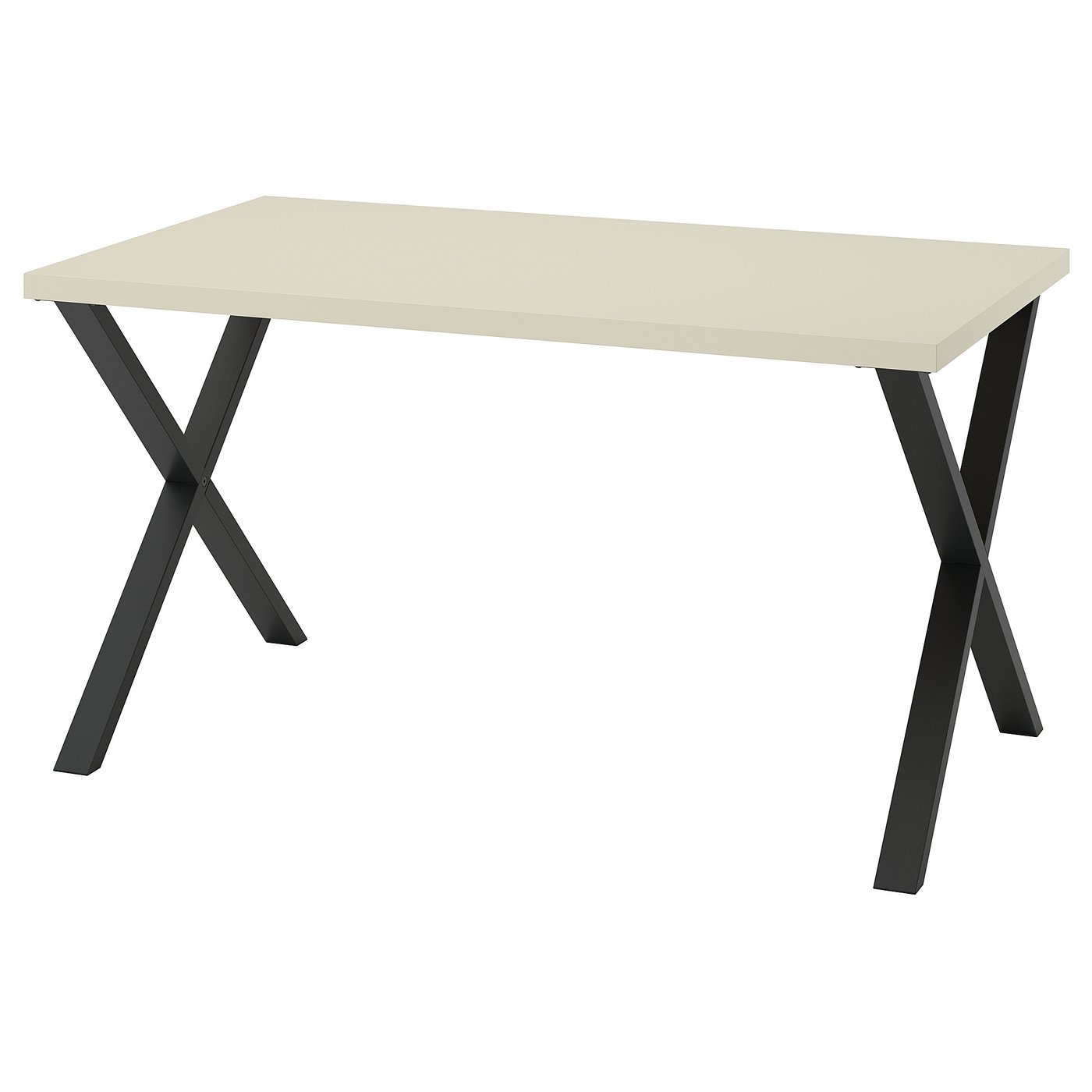 SKÅLSTA table, light grey-beige/X-shaped black-grey, 140x80 cm, Fibreboard. Want a table that's just right for you? With the SKÅLSTA series, you can pick a ready-made table like this or design your own by pairing table tops with table legs – all at a price that’s easy to love! | dining room table, dining table, kitchen table, sitting room desk, rectangle dining table, living room desk