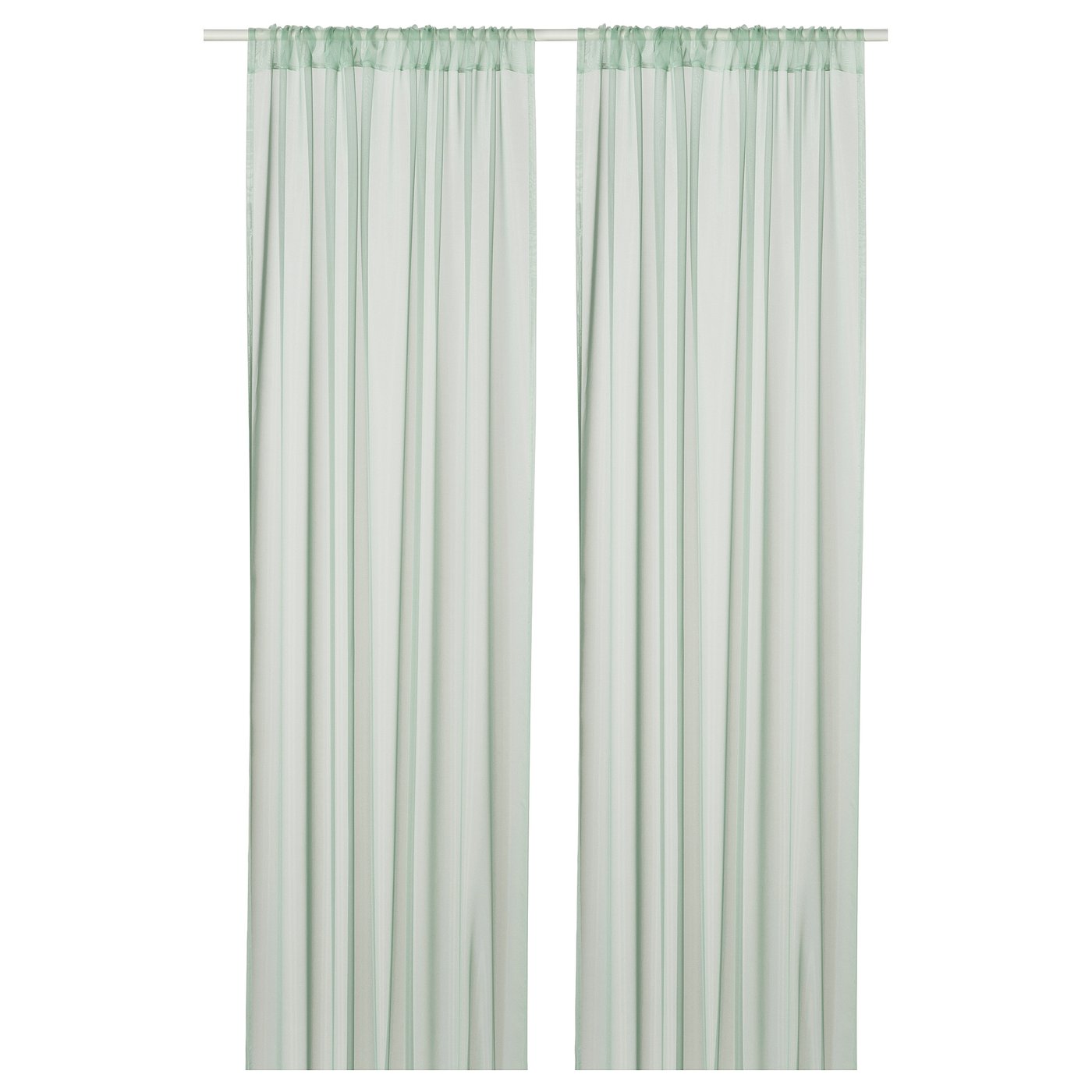 IKEA TERESIA sheer curtains, 1 pair, light green/with rod pocket, 145x250 cm