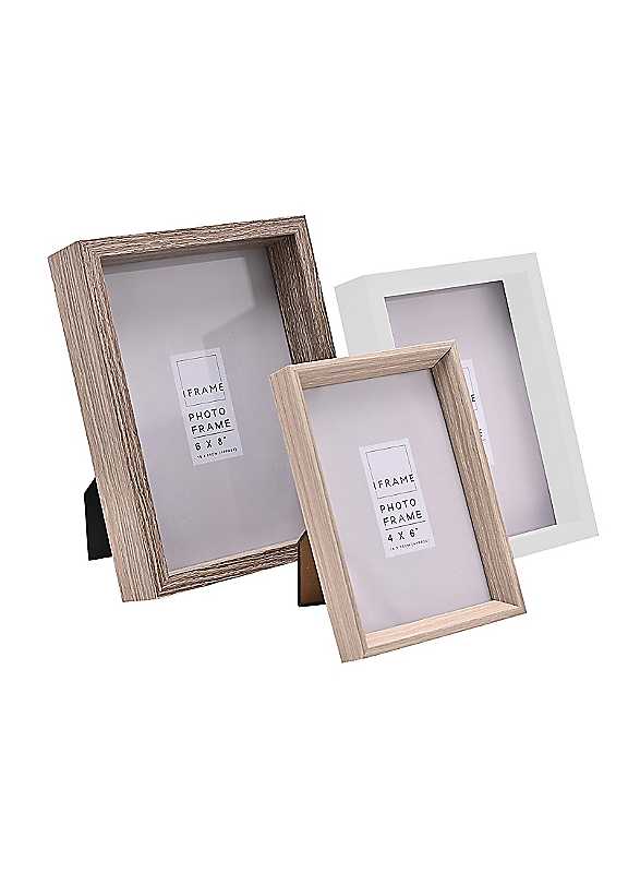 The Set of 3 Frames - Three Colours, White Washed Effect (4x6 Inch, 5x7 Inch & 6x8 Inch) offers a soft, rustic-inspired way to display your favourite photographs, featuring three complementary frame finishes in gentle whitewashed tones. Each size provides styling versatility, allowing you to group them together for a coordinated display or place them individually around your home. With their lightly textured, natural look, these frames add a warm, relaxed touch to mantels, shelves or bedside tables while showcasing your memories beautifully. Set of 3 Glass Dimensions approx. 22H x 17W x 4.5D cm 4x6 Inch, 5x7 Inch & 6x8 Inch