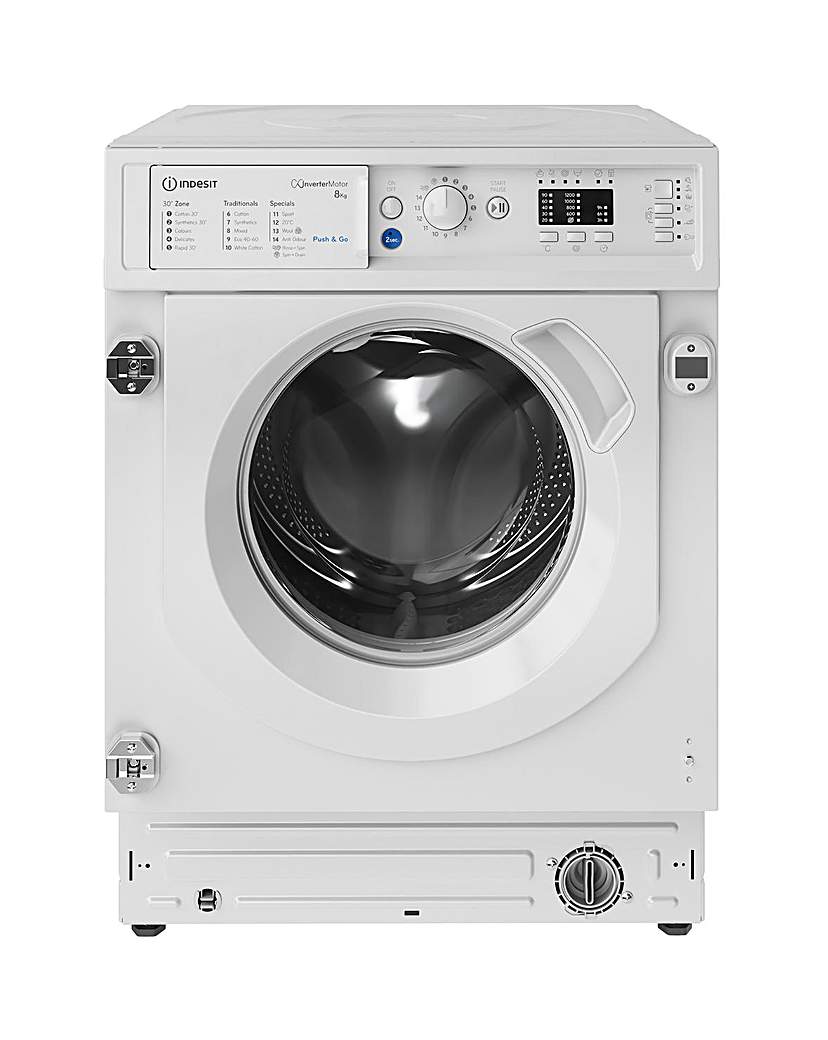 The Indesit Integrated Washing Machine has your family covered by helping get the chore of laundry completed that little bit faster with minimal fuss. With Indesit's Push&Go technology. Simply press and hold the dedicated button for 2 seconds, and the machine will automatically start a 45 minute 30 degree cycle that is perfect for cottons and synthetics. The Rapid Wash selection gives you quick, thorough cleaning in as little as 20 minutes on small loads, or just 60 minutes on a full load, perfect for those last minute laundry emergencies. Water Balance Plus will help you to save money on your energy bills by adapting the amount of water used according to each cycle's need, ensuring minimal wastage. Push&Go - Push&Go technology is designed to effectively remove more than 20 common types of stains, without pre-treating, in just 45 minutes, at the push of a button. Water Balance Plus - By adapting the amount of water used according to the cycle's need, there's minimal wastage which helps save money on your bills. Keylock - The Keylock feature is designed to prevent accidental use of the control panel. Your curious little toddler won't be able to open the washing machine or change the settings any longer. Wool Care - Trust us to provide the utmost care for your woollens with a delicate wash programme that ensures a perfect clean whilst protecting the softness of the fabric.