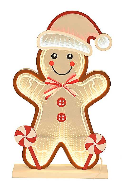 Our Infinity Gingerbread LED Stand Light is a beacon of festive cheer, sure to brighten any room with its vibrant colours and playful design. Compact yet eye-catching at 34.5cm in heightMains powered (USB)Dimensions approx. 34.5H x 5W x 20D cm
