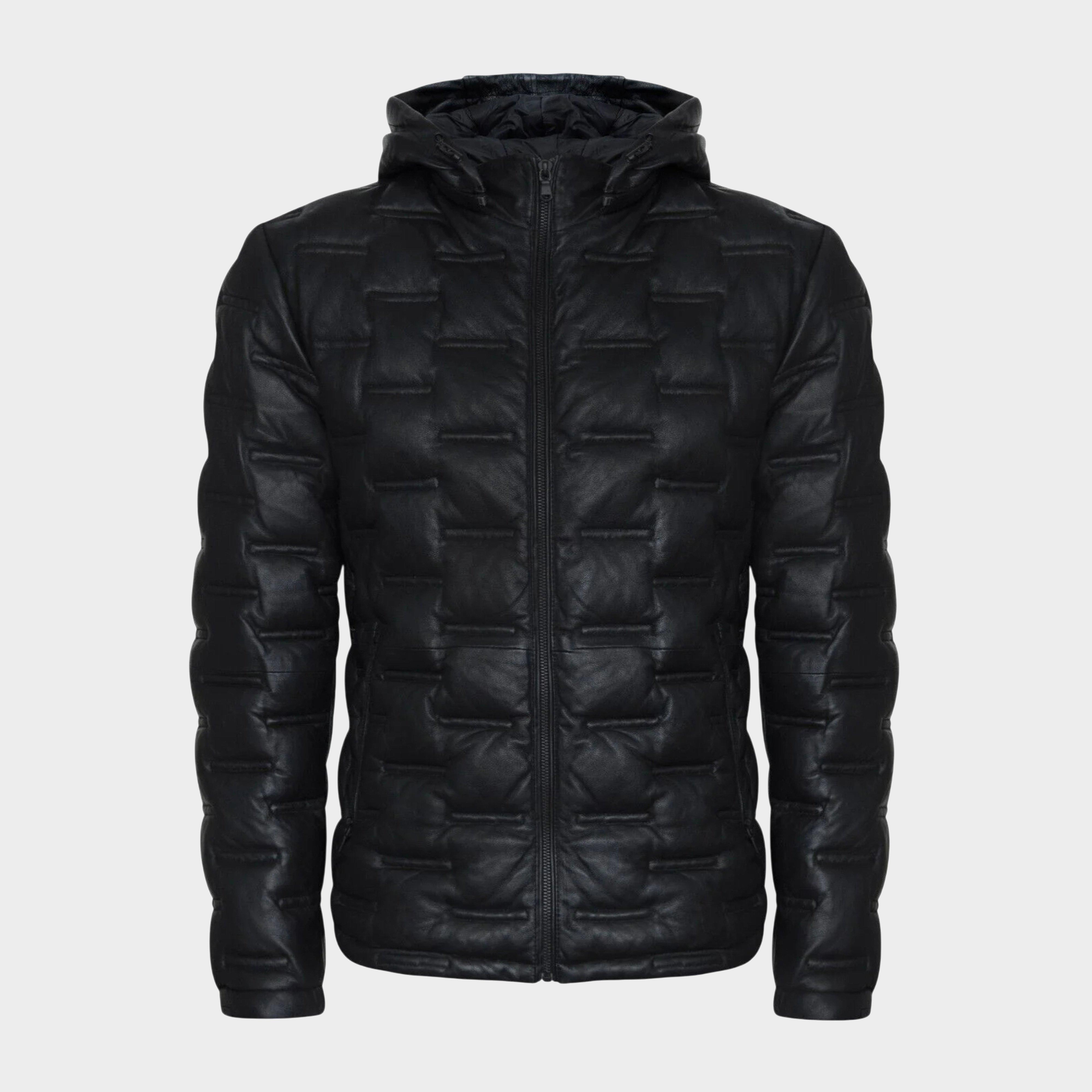 Infinity Leather Men's Hooded Puffer Quilted Bomber Leather Jacket - Go Outdoors
