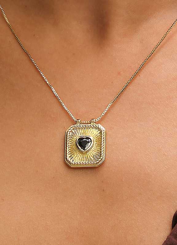Our Inicio 14K Gold Plated Jet and Heart Charm Necklace is a must have trending piece that seamlessly blends trend and elegance, with a 14k gold finish this bracelet offers a luxurious feel.Fastening: Lobster ClaspCostume Jewellery14K Gold Plated Base MetalWidth approx. 22 mmLength approx. 22 mm | gold plated heart, heart pendant necklace, gold necklace charm, gold statement necklace, gold heart charm, gold heart pendant, gold plated jewelry, 14k gold heart, necklace lobster clasp, gold heart necklace, heart shaped necklace, black heart necklace, gold plated pendant, 14k gold plated, jet necklace