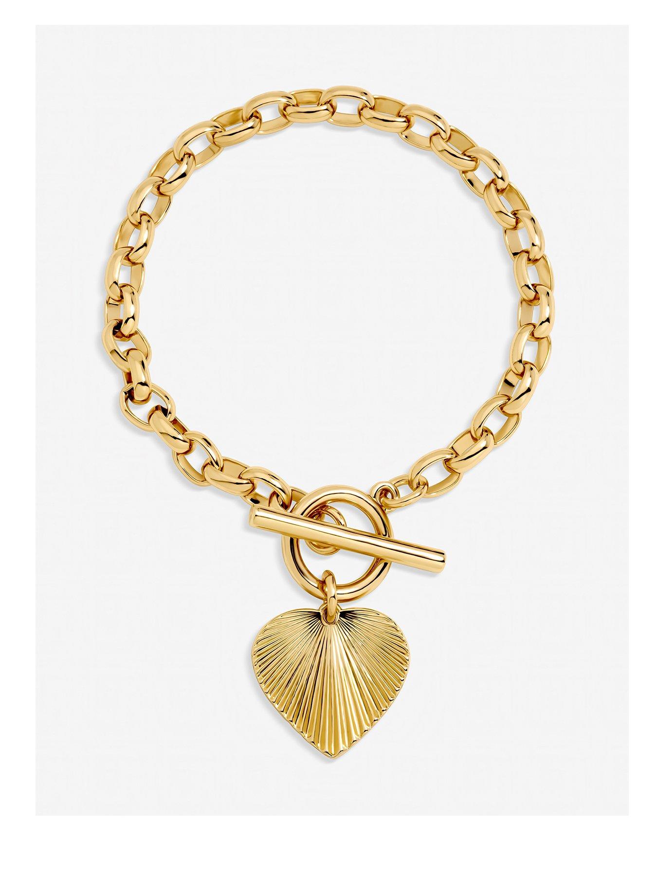 Inicio Gold Plated Diamond Cut Heart T-Bar Bracelet - Gift Pouch - Women